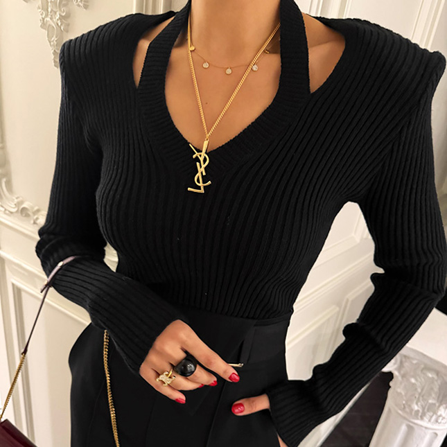 엘 홀가먼트 골지 니트탑