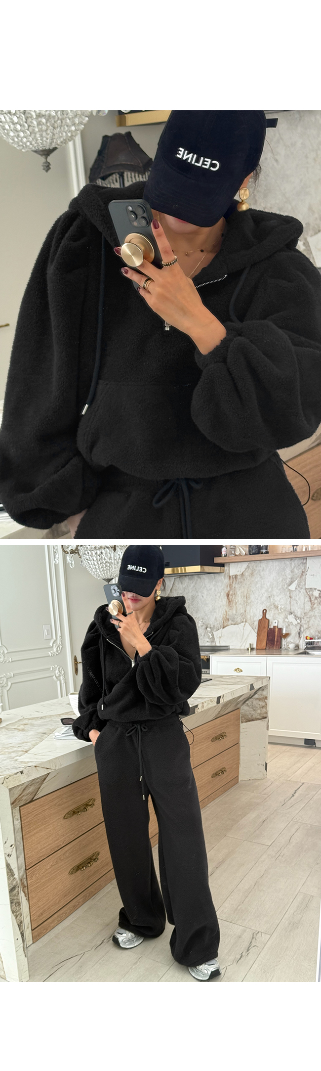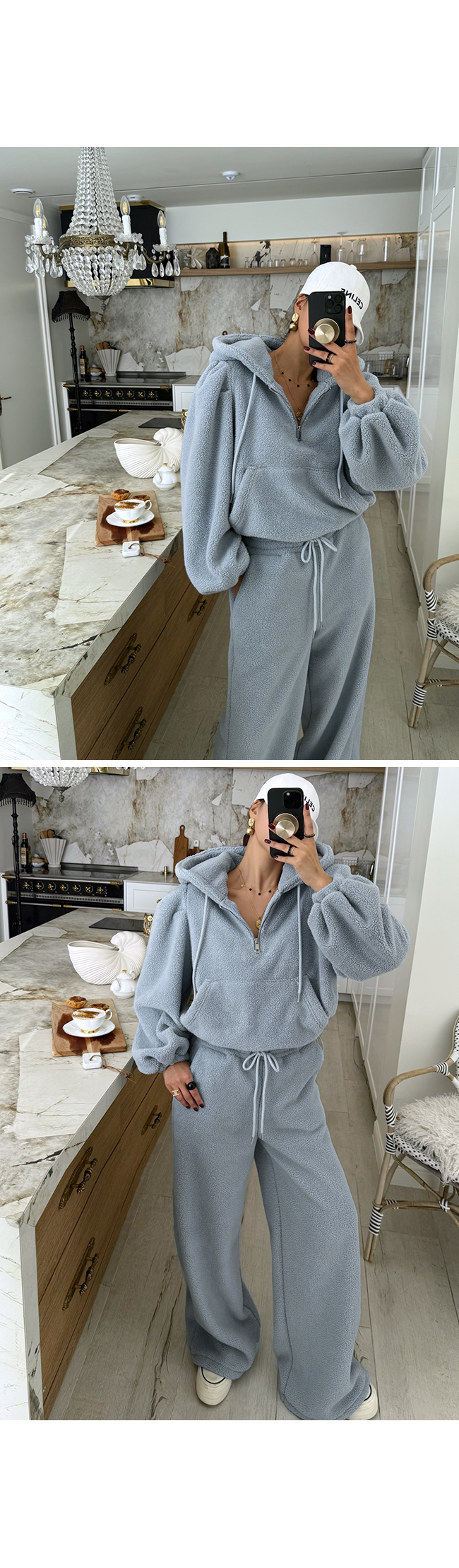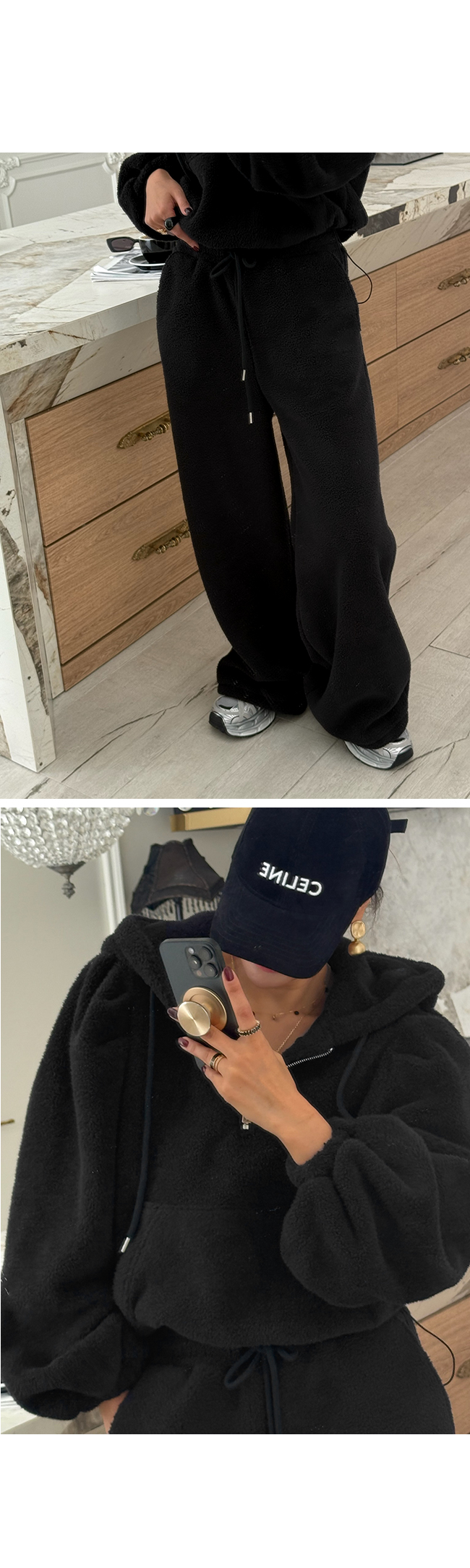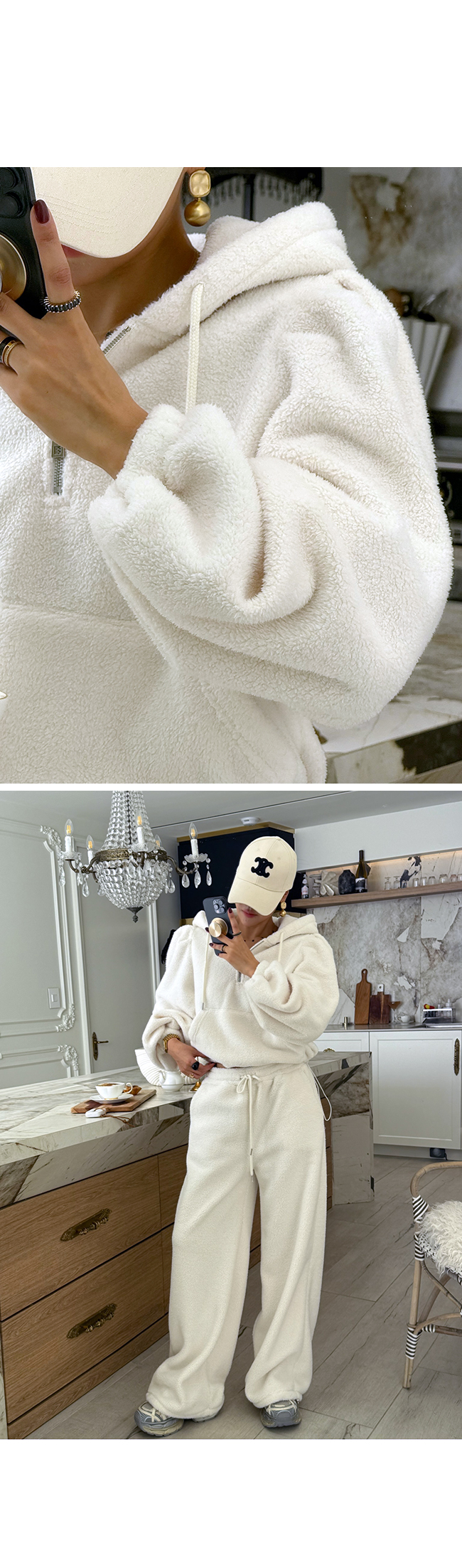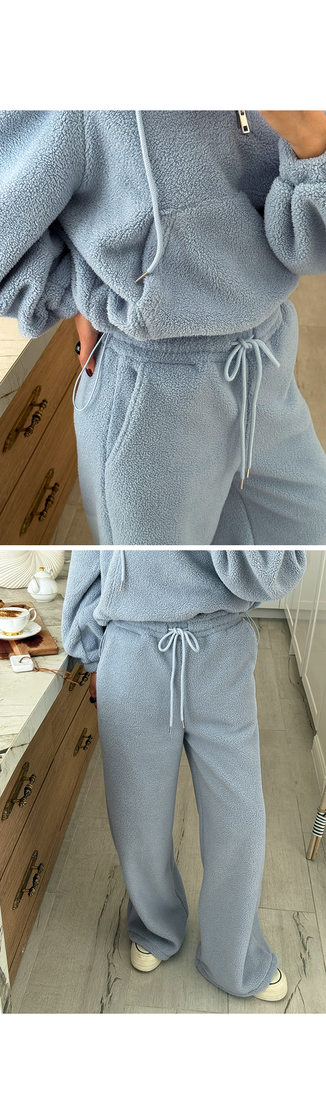 - 안쪽면이 쮸리나 기모가 가공이된 소재감들은 가공 과정에 의해 약간의 먼지가 발생할 수 있으니, 세탁후 입어주세요.
