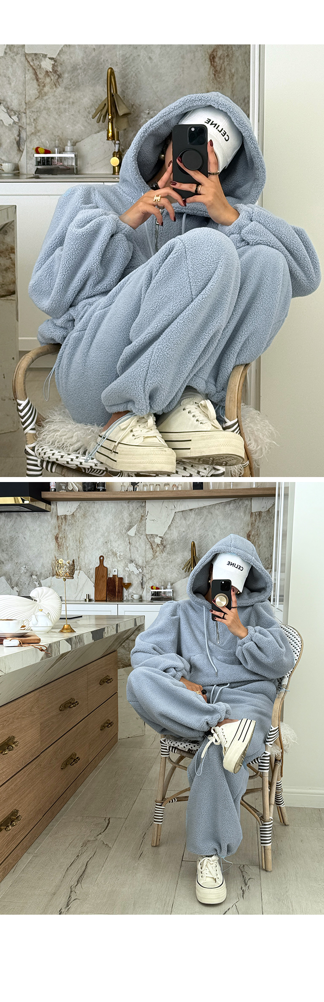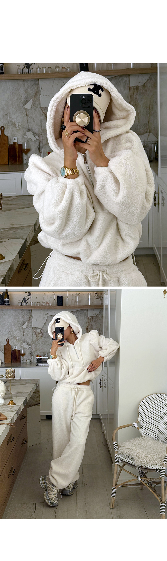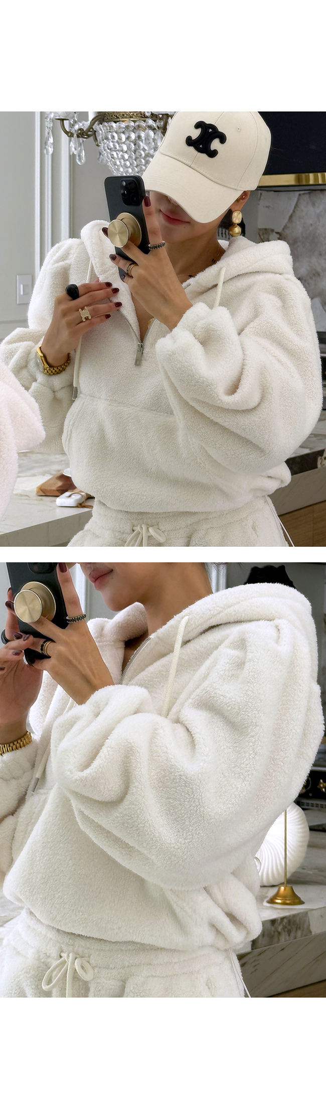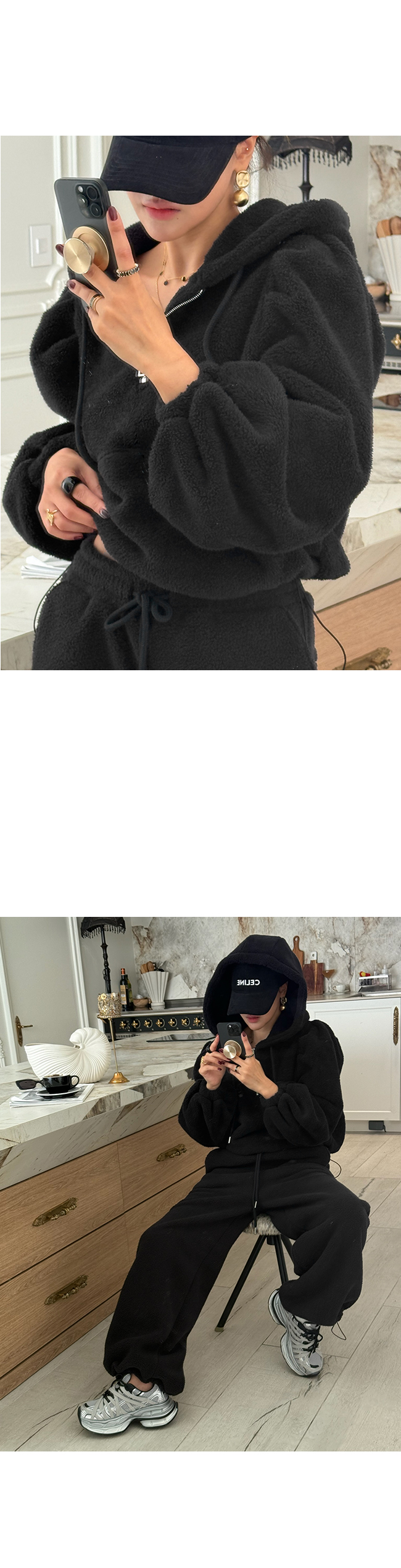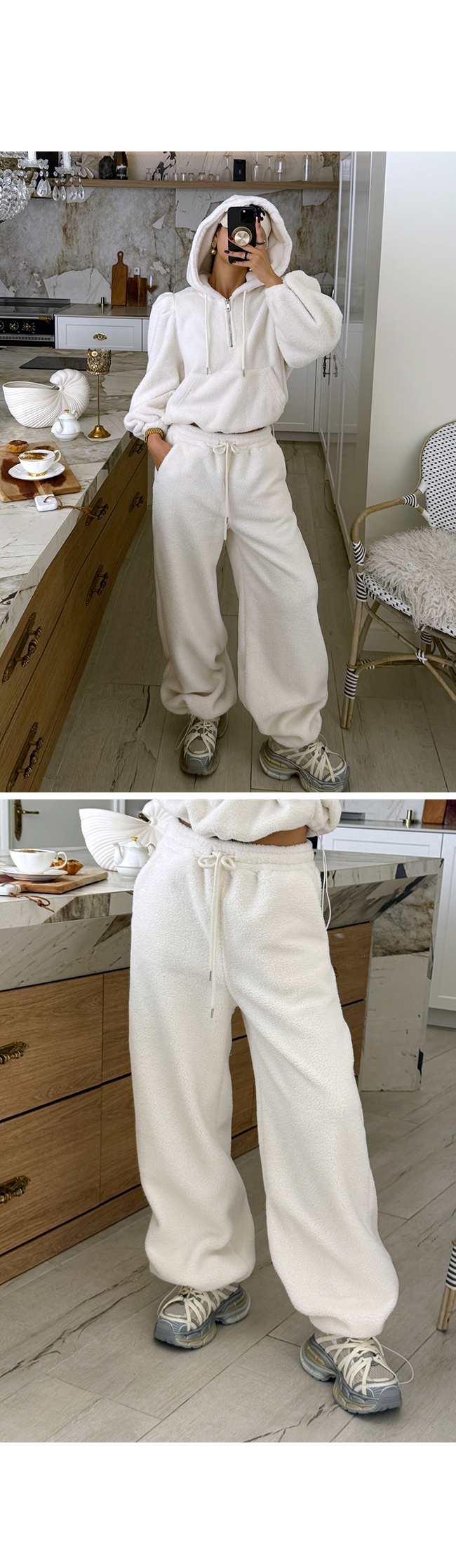 - 안쪽면이 쮸리나 기모가 가공이된 소재감들은 가공 과정에 의해 약간의 먼지가 발생할 수 있으니, 세탁후 입어주세요.