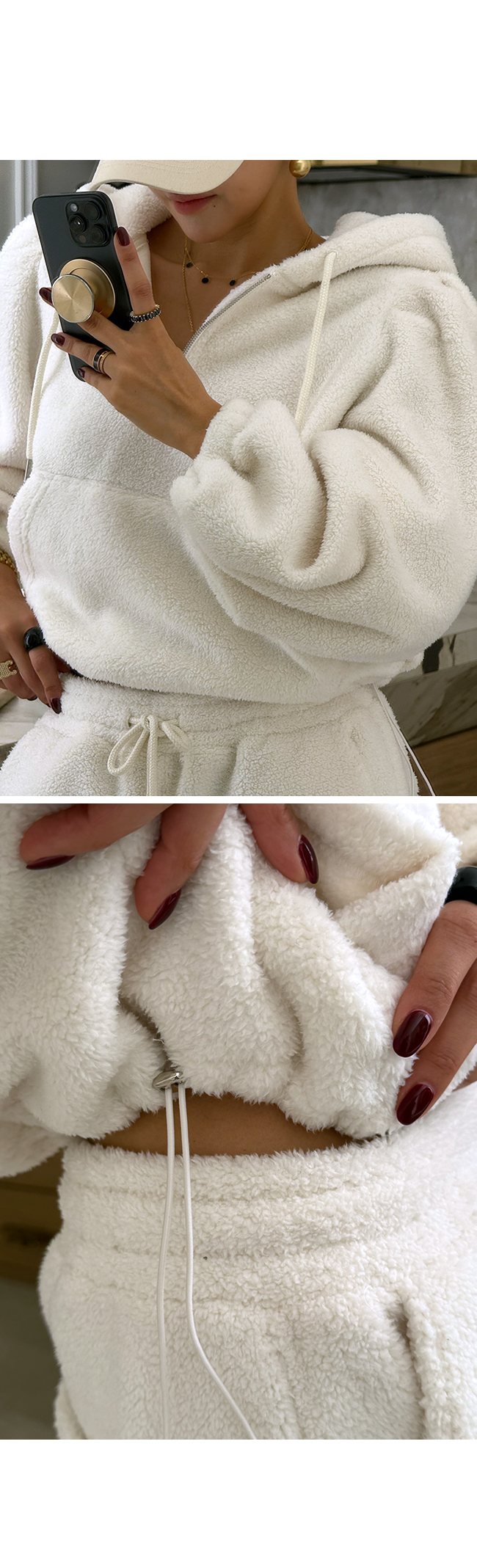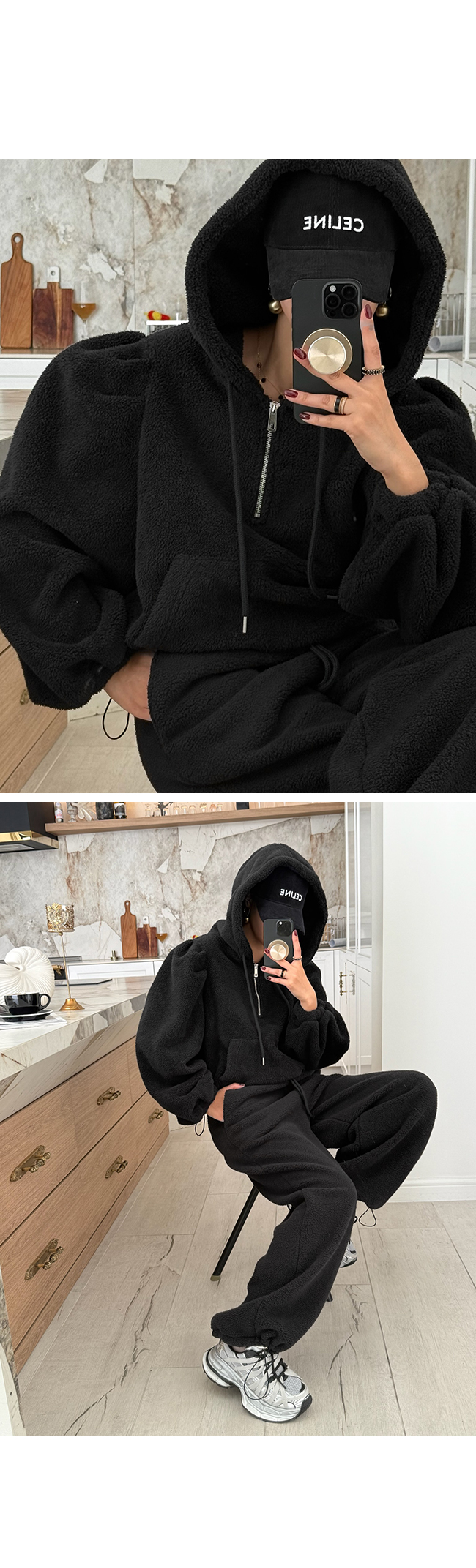 넉넉한 후드와 드로스트링이 더해져