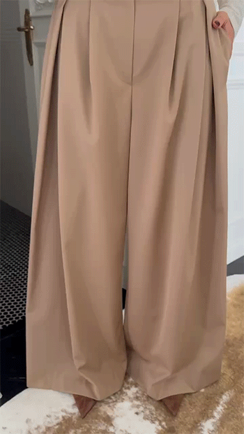 허리 라인에 잡힌 핀턱 디테일이 자연스럽게 볼륨을 더해주어