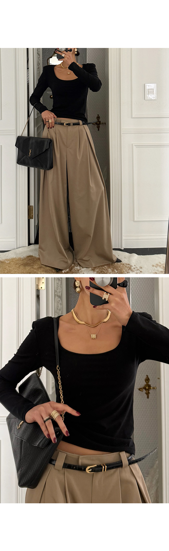 보다 길고 슬림한 비율로 연출해주는 아이템이에요.
