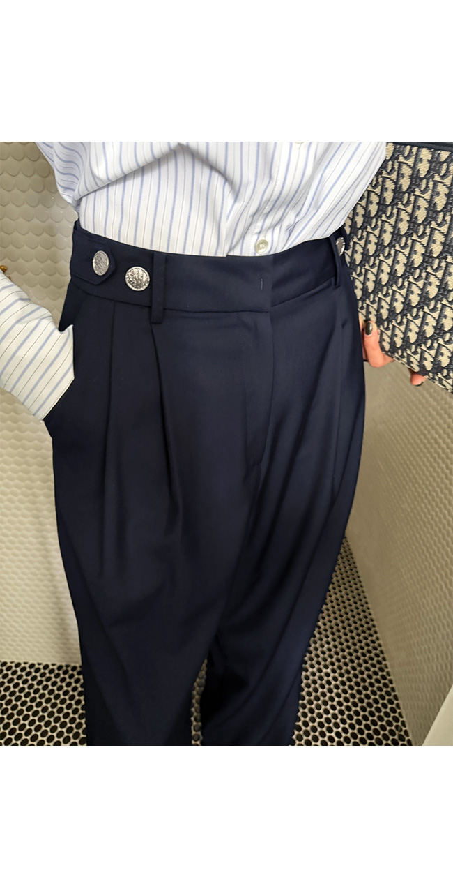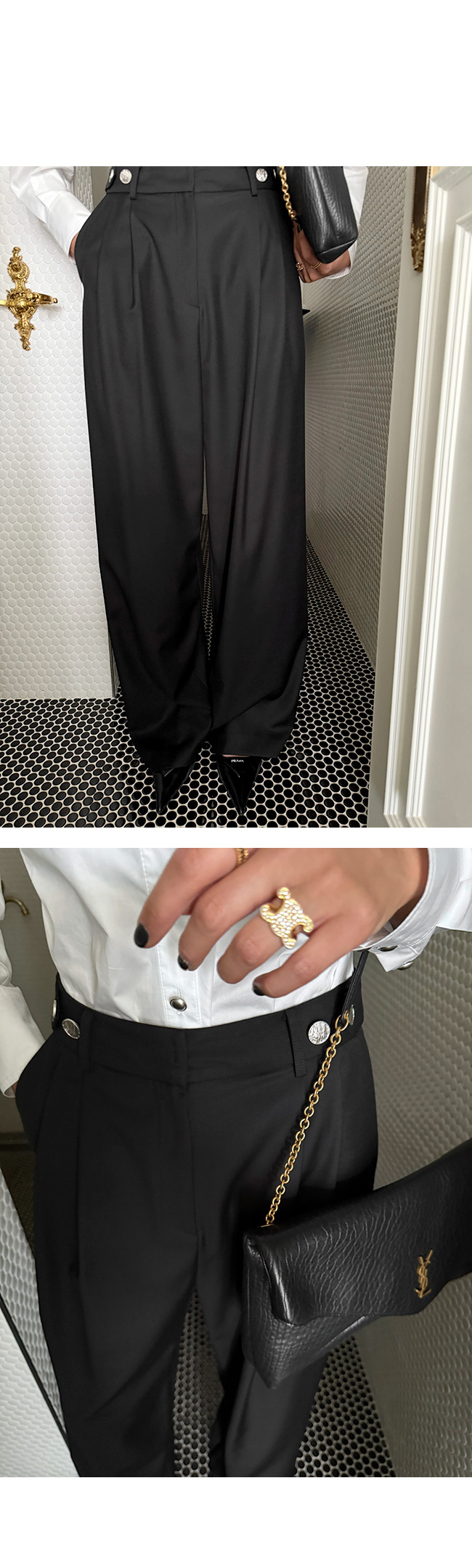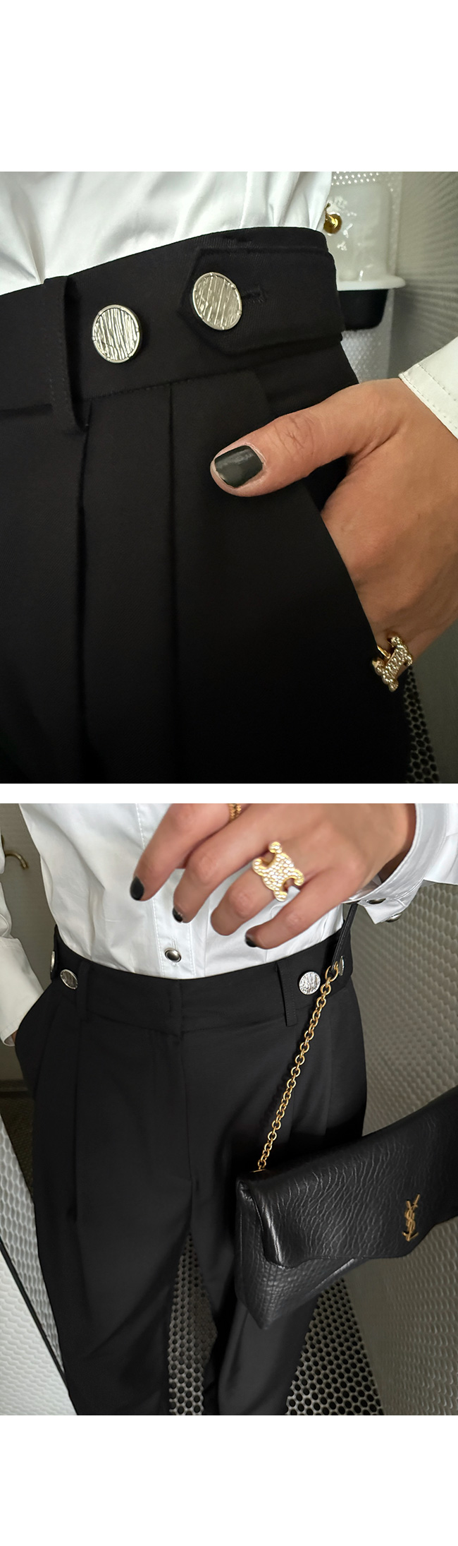 허리라인에는 입체감 있는 실버 버튼 장식이 포인트가 되어