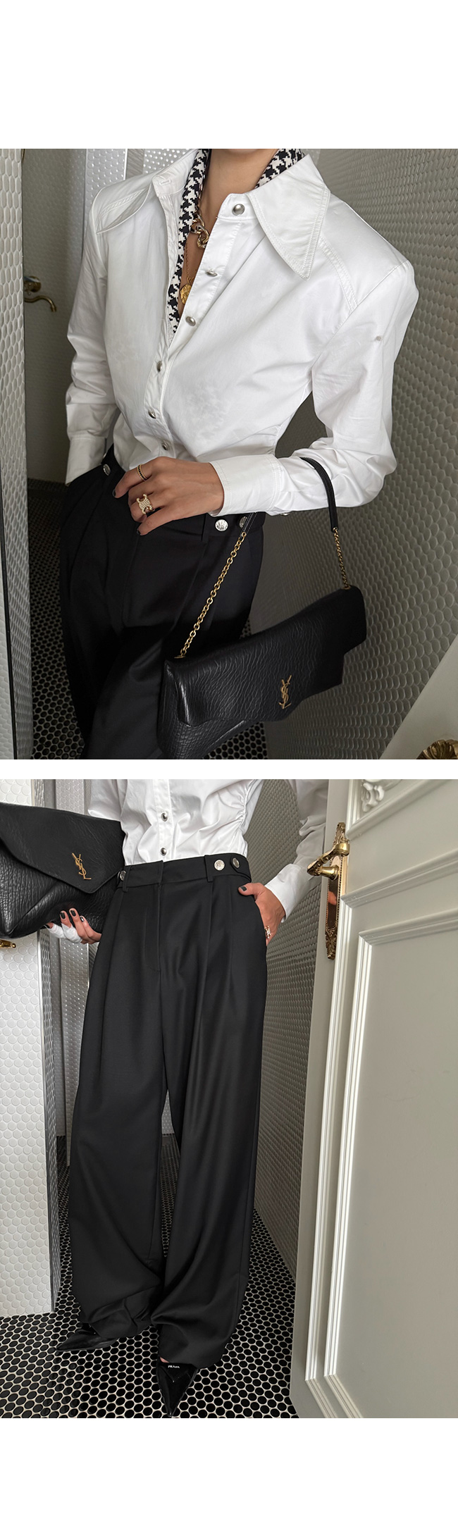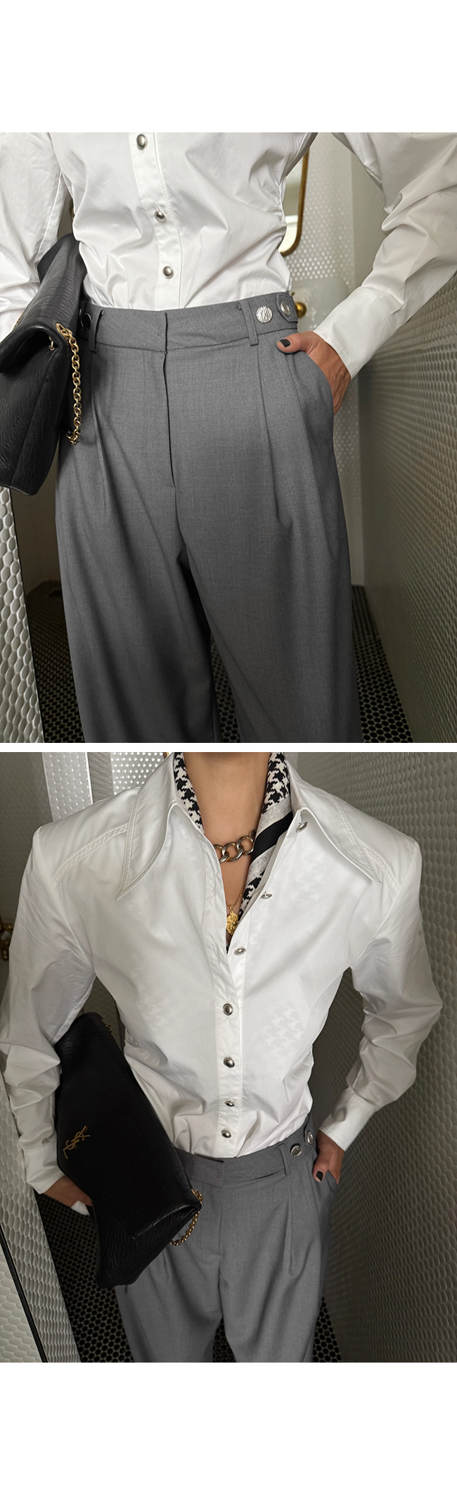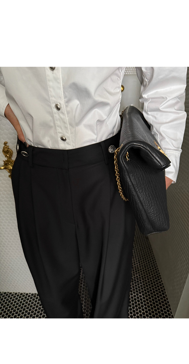 허리라인에는 입체감 있는 실버 버튼 장식이 포인트가 되어
