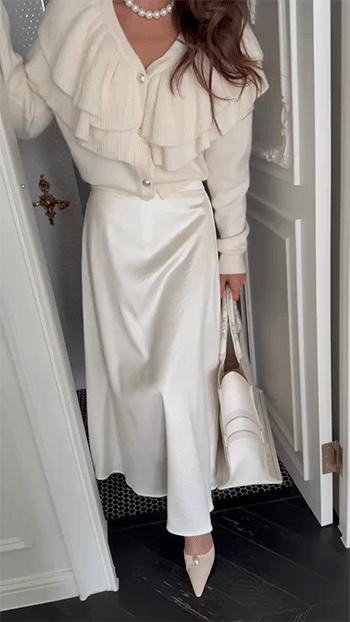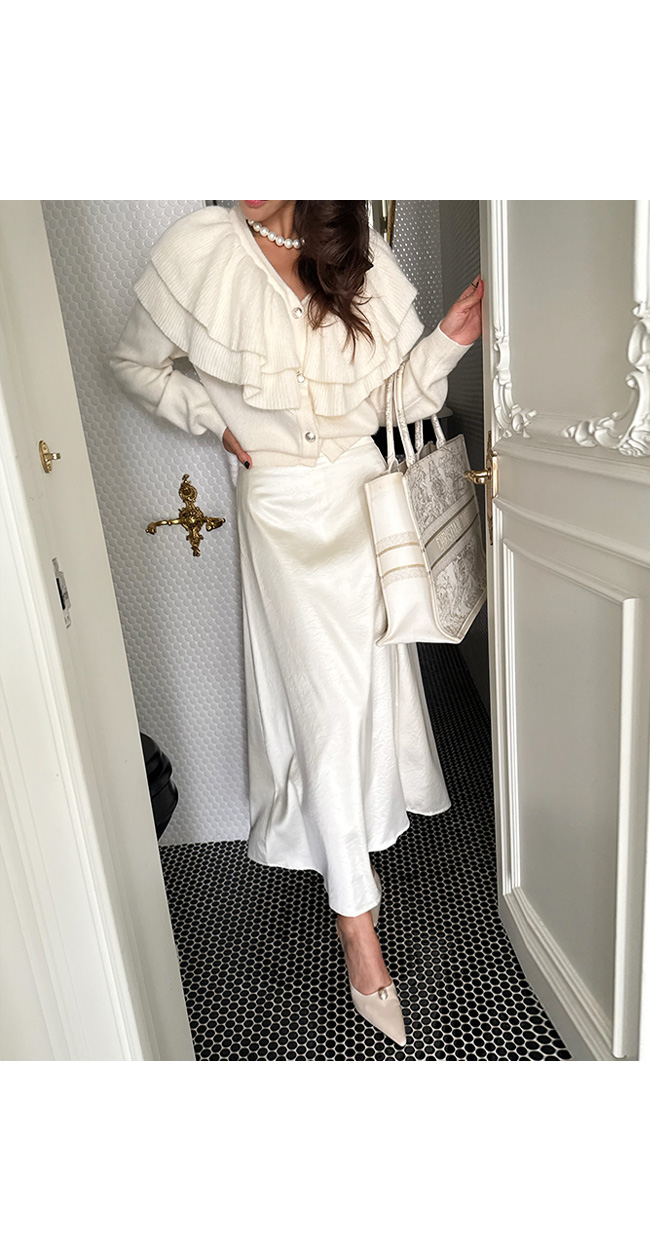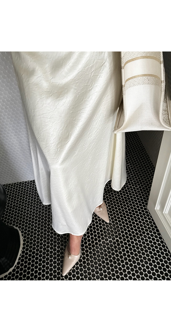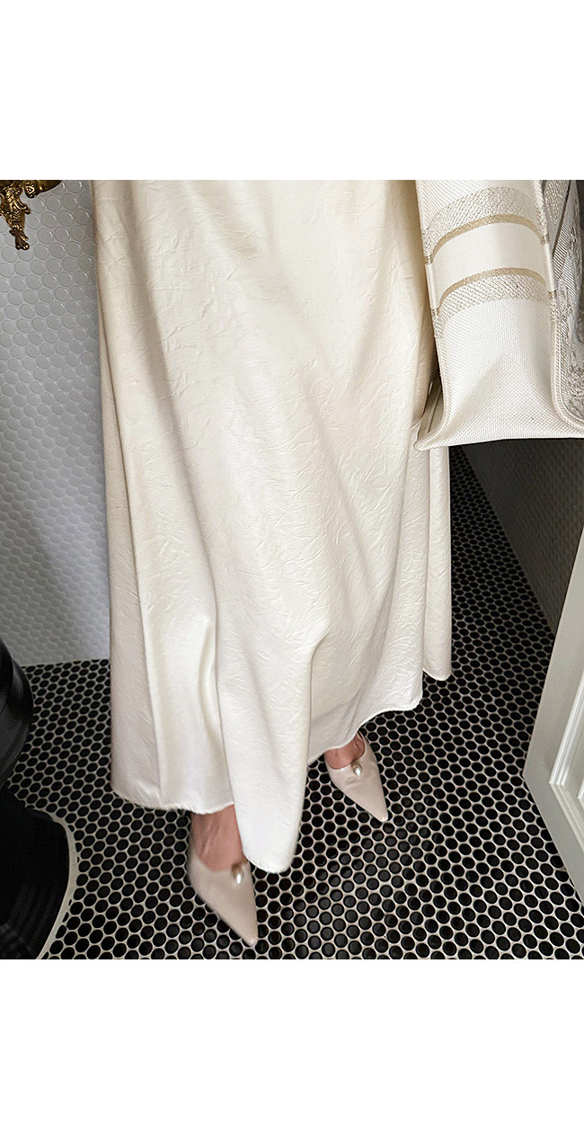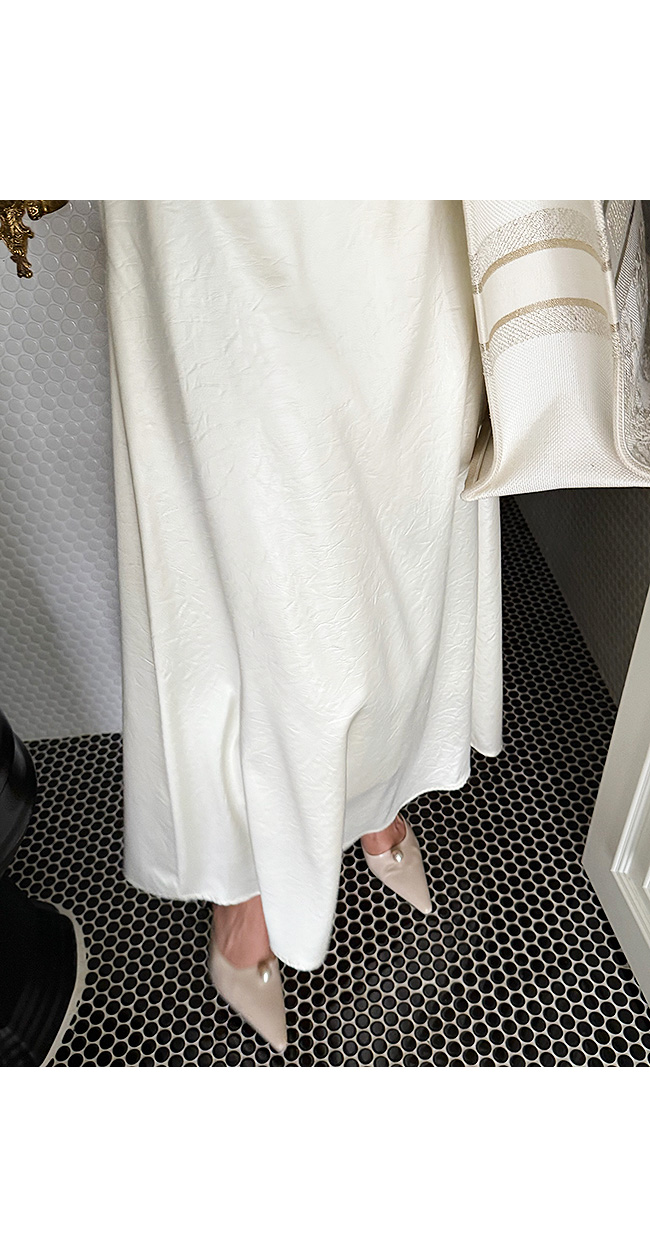 롱 기장으로 걸을 때마다 흐르는 듯한 드레이프가 연출되어