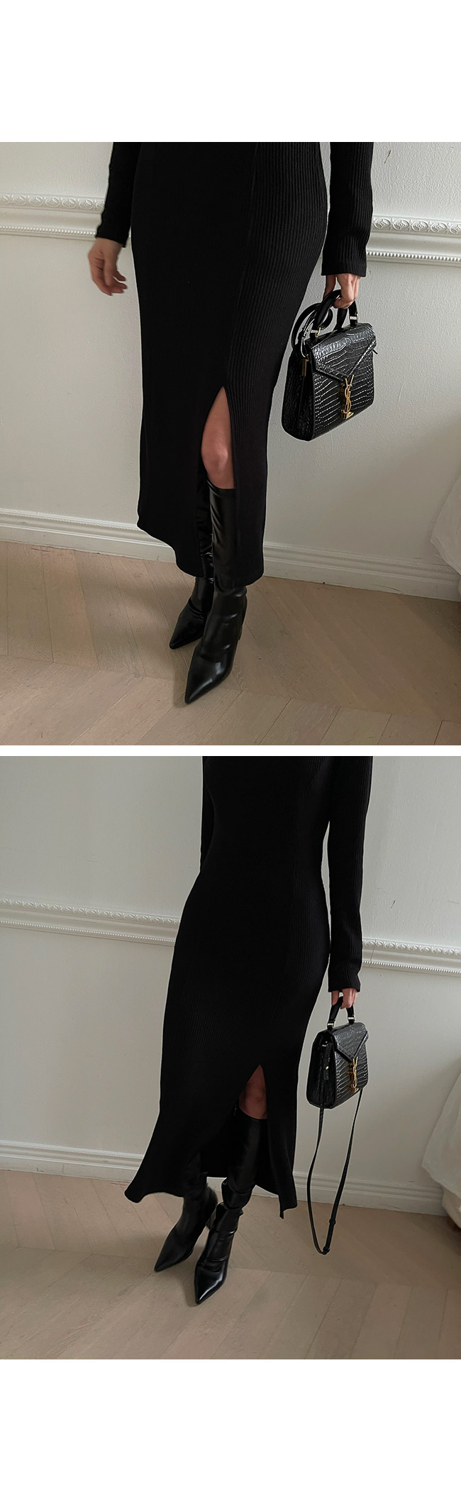 슬림한 핏감으로 글램한 바디라인을 만들어주면서 세로골지패턴으로 날씬해 보이기까지 해서 마음에 쏙 들었던것 같아요.