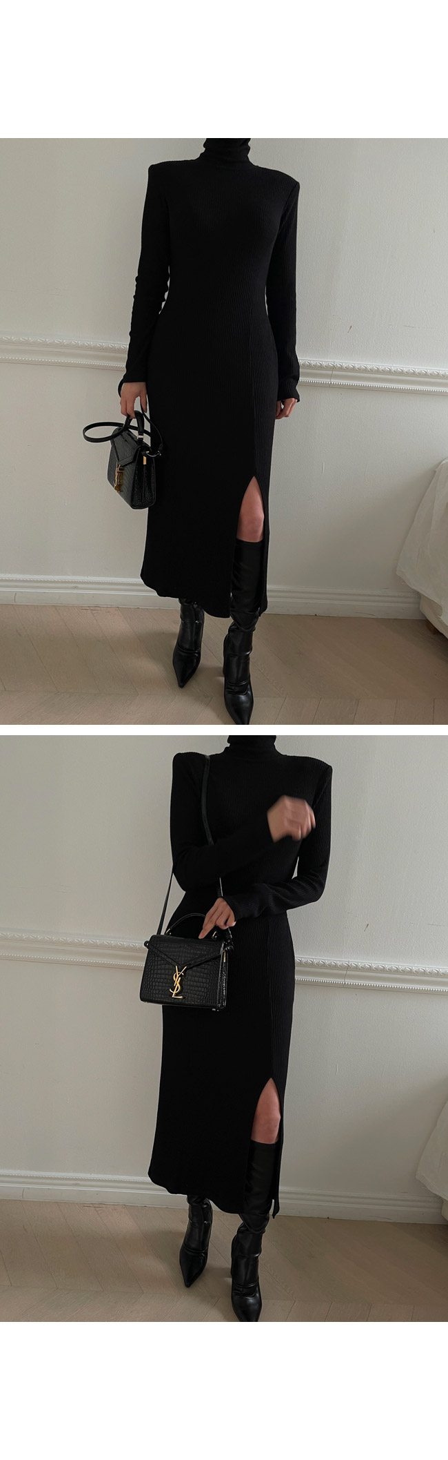 슬림한 라인감이 너무 예쁜 실루엣을 만들어주는 원피스에요.