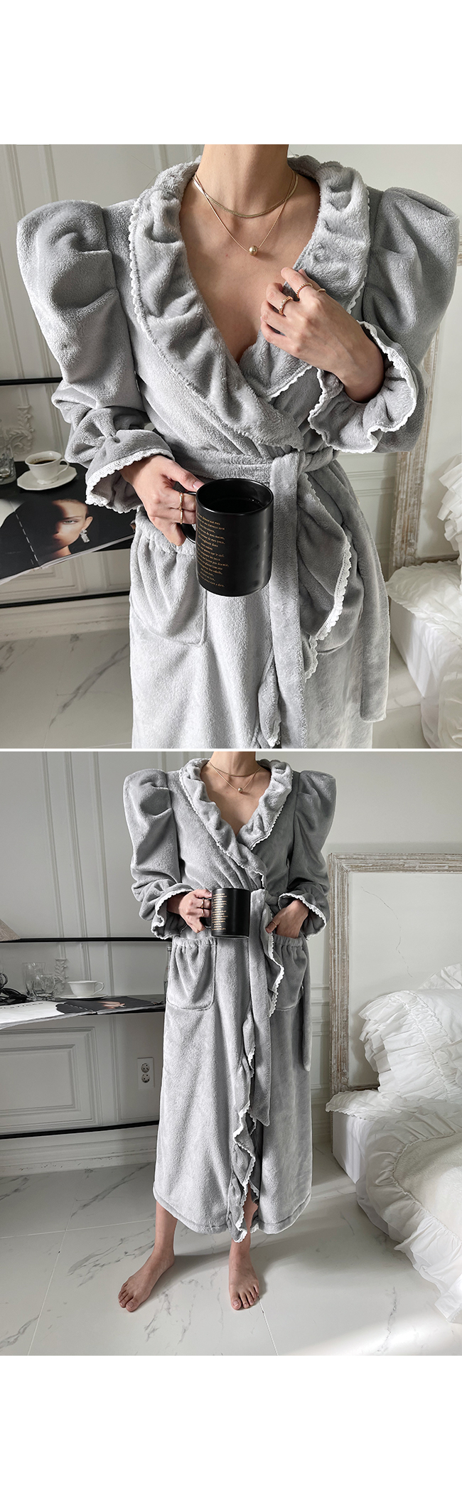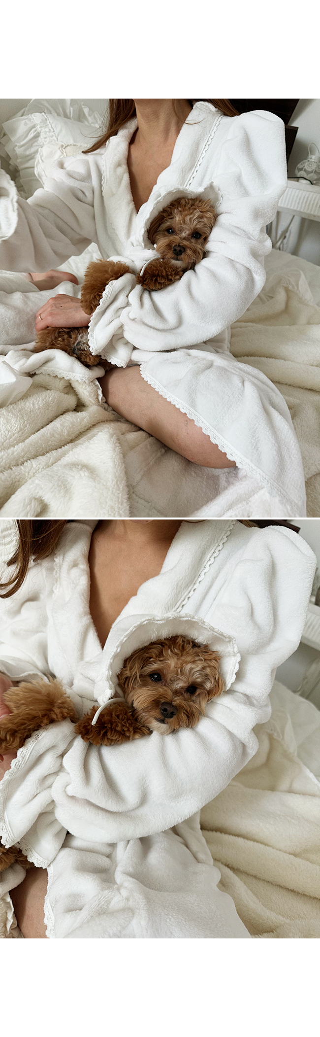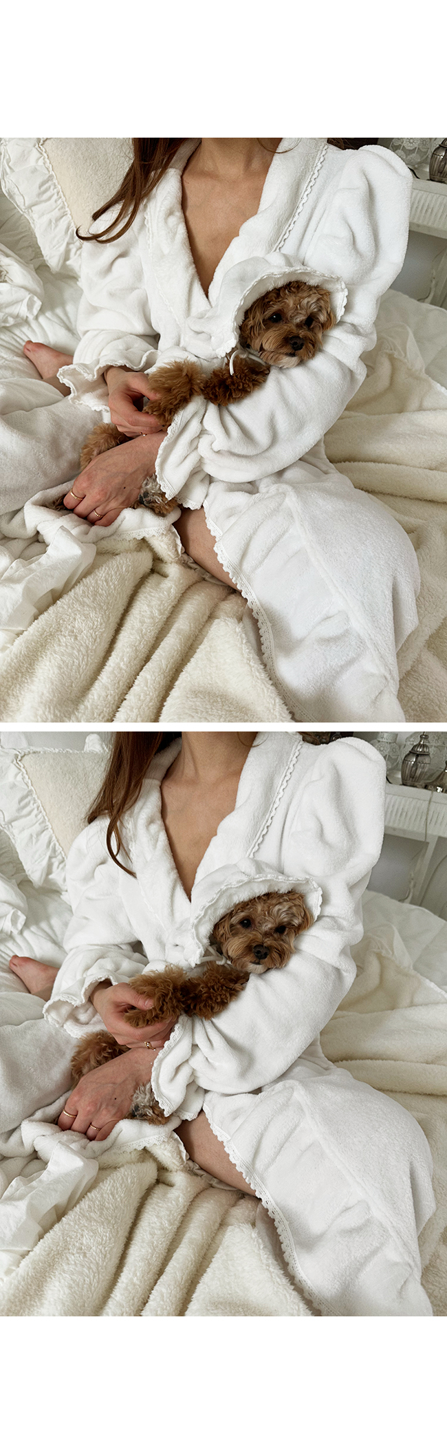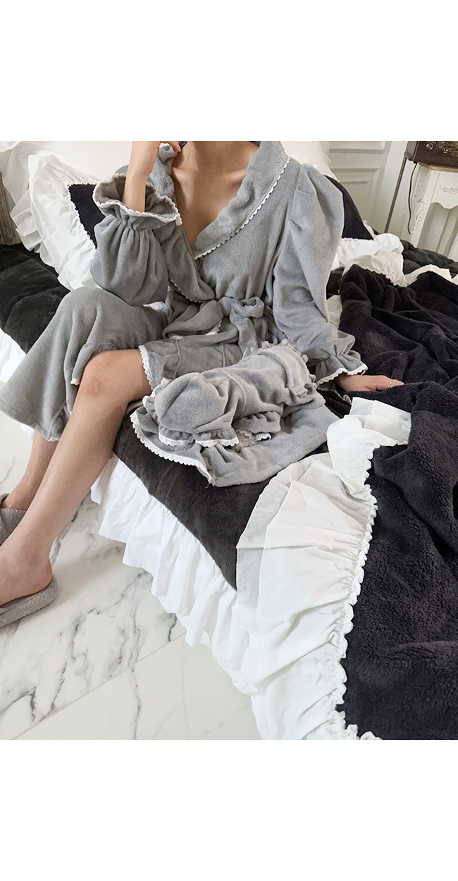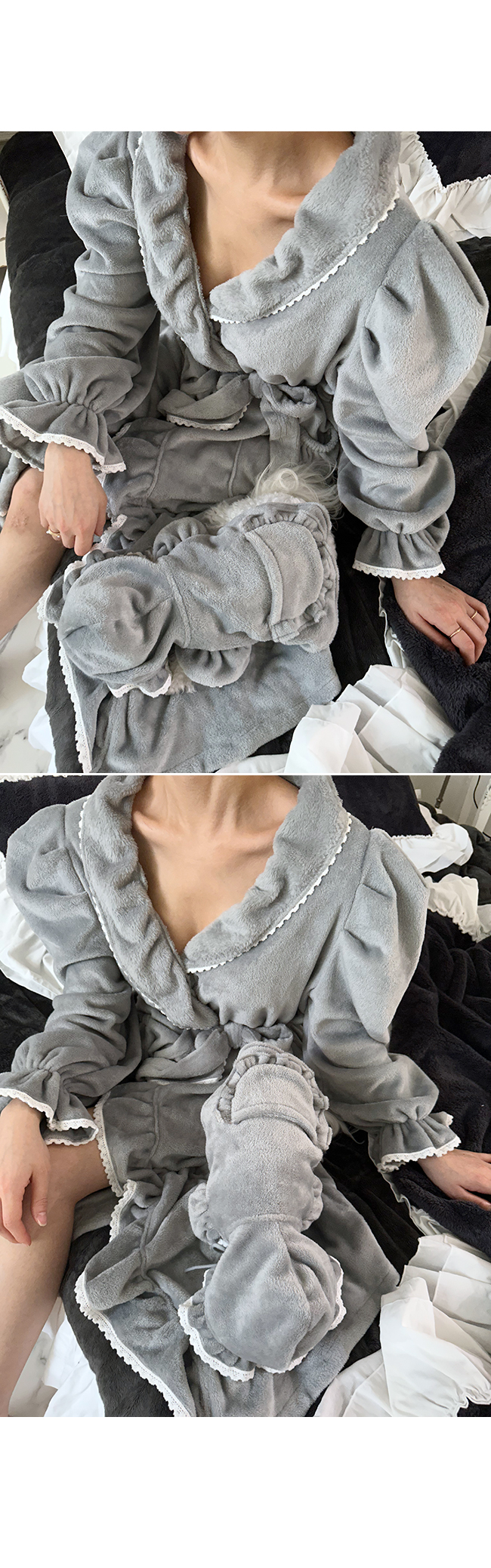 러블리한 디자인에 제가 너무너무 좋아하는 밍크 느낌의 수면잠옷 소재여서 보온성까지 갖춘 제품이예요. 수면잠옷도 소재마다 퀄리티가 있는거 아시쥬? 다 같은 수면잠옷이 아니더라구요. ㅎ 이 가운에 사용된 소재는 퀄리티가 높은 수면잠옷 소재로 약간의 광택감과 함께 부드럽고 포근한 촉감이 뽀인트인 제품으로 툭 걸쳐만 주어도 사르르르 녹아버리는 듯한 부드러움과 따뜻함이 기분전환 하기에 너무 좋아요! 요즘 아무리 난방이 잘된다 하더라고 쌀쌀할때 있잖아요- 그럴때 툭 걸쳐주기만 해도 난방 온도를 더 내릴정도로 따뜻해서 겨울에 보일러값 절감에도 도움이 될거같은거 있죠?ㅎㅎ 가운도 그냥 가운이 아닌 네프호텔의 러블리함과 줄로그의 빈티지한 느낌이 더해져 흔하지 않은 유니크함까지 더해주어 연말 친구들과 호텔 놀러갈때 하나씩 다른칼라로 챙겨가서 예쁜 추억을 만들어 보셔도 좋을거같아요! 머리띠는 필수인거 아시쥬?ㅎ 볼륨감이 느껴지는 퍼프 소매는 물론이고 손목, 넥라인을 따라 러블리하게 달려있는 프릴디테일이 러블리한 여자로 변신시켜주는데요, 프릴 끝단에도 레이스 리본 원단으로 덧데어주어 일반 홈웨어와는 또 다른 느낌으로 기분 전환 하기에도 좋아요. 디자인도, 소재도 너무 만족스러웠던 제품으로 나 자신을 위한 선물로도 좋구요, 사랑하는 지인들을 위한 선물로도 추천드려요.