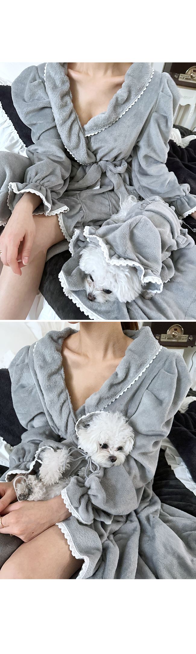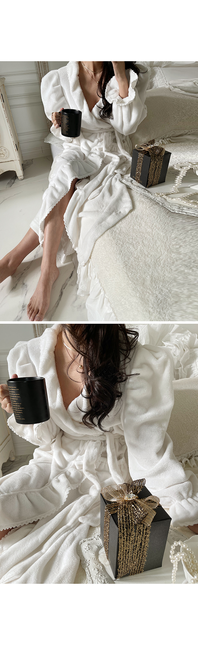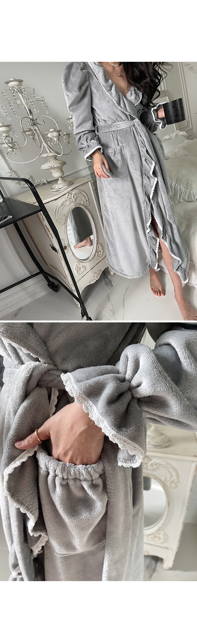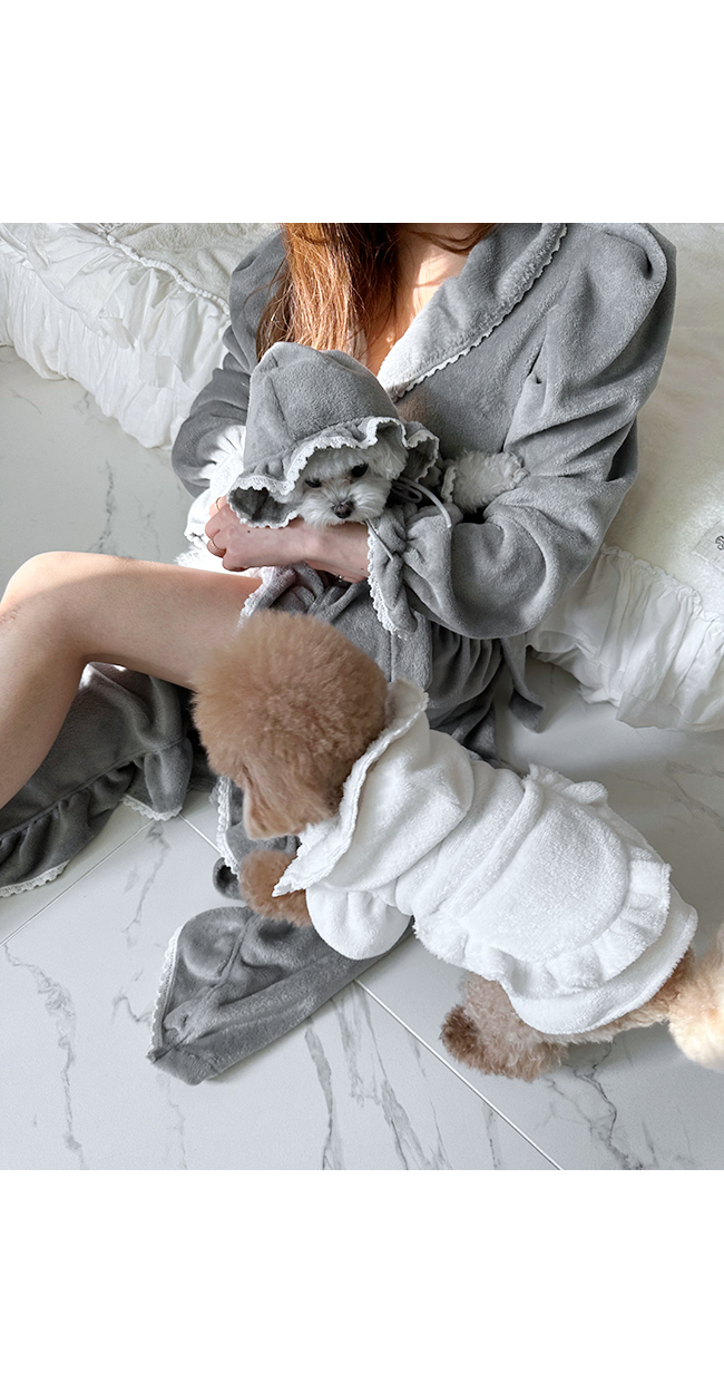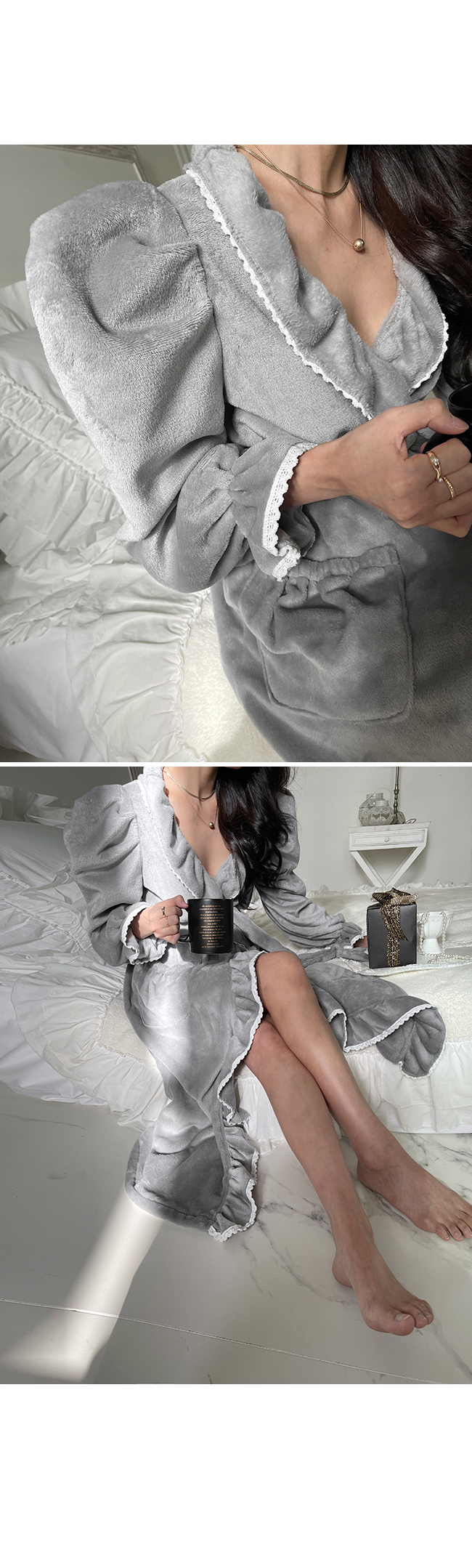 러블리한 디자인에 제가 너무너무 좋아하는 밍크 느낌의 수면잠옷 소재여서 보온성까지 갖춘 제품이예요. 수면잠옷도 소재마다 퀄리티가 있는거 아시쥬? 다 같은 수면잠옷이 아니더라구요. ㅎ 이 가운에 사용된 소재는 퀄리티가 높은 수면잠옷 소재로 약간의 광택감과 함께 부드럽고 포근한 촉감이 뽀인트인 제품으로 툭 걸쳐만 주어도 사르르르 녹아버리는 듯한 부드러움과 따뜻함이 기분전환 하기에 너무 좋아요! 요즘 아무리 난방이 잘된다 하더라고 쌀쌀할때 있잖아요- 그럴때 툭 걸쳐주기만 해도 난방 온도를 더 내릴정도로 따뜻해서 겨울에 보일러값 절감에도 도움이 될거같은거 있죠?ㅎㅎ 가운도 그냥 가운이 아닌 네프호텔의 러블리함과 줄로그의 빈티지한 느낌이 더해져 흔하지 않은 유니크함까지 더해주어 연말 친구들과 호텔 놀러갈때 하나씩 다른칼라로 챙겨가서 예쁜 추억을 만들어 보셔도 좋을거같아요! 머리띠는 필수인거 아시쥬?ㅎ 볼륨감이 느껴지는 퍼프 소매는 물론이고 손목, 넥라인을 따라 러블리하게 달려있는 프릴디테일이 러블리한 여자로 변신시켜주는데요, 프릴 끝단에도 레이스 리본 원단으로 덧데어주어 일반 홈웨어와는 또 다른 느낌으로 기분 전환 하기에도 좋아요. 디자인도, 소재도 너무 만족스러웠던 제품으로 나 자신을 위한 선물로도 좋구요, 사랑하는 지인들을 위한 선물로도 추천드려요.