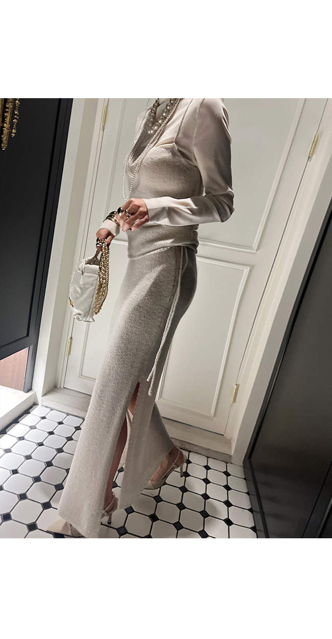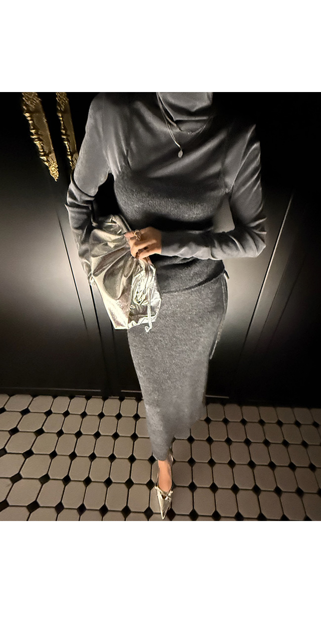 모델언니처럼 같은 소재의 스커트와 함께 매칭하시면