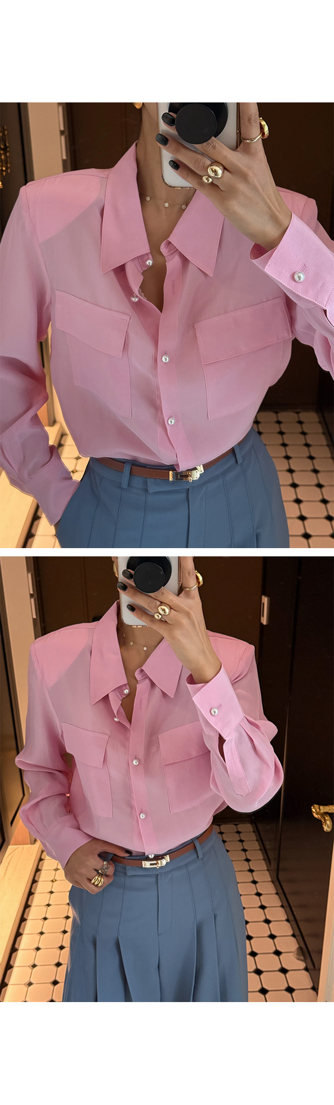 기본 셔츠 디자인으로 하의 종류 상관없이