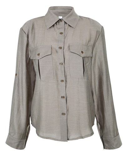 클래식한 셔츠 카라와 깔끔한 버튼 라인으로