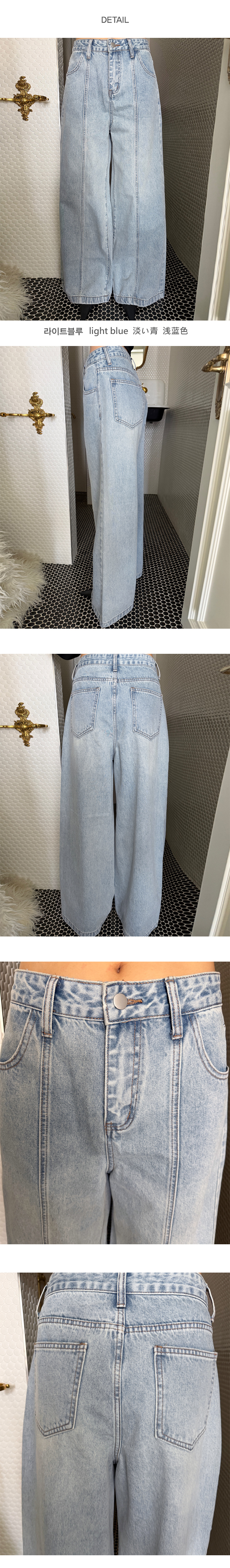 자연스러운 라이트 블루 워싱이 돋보이는 데님 원단으로 제작되어