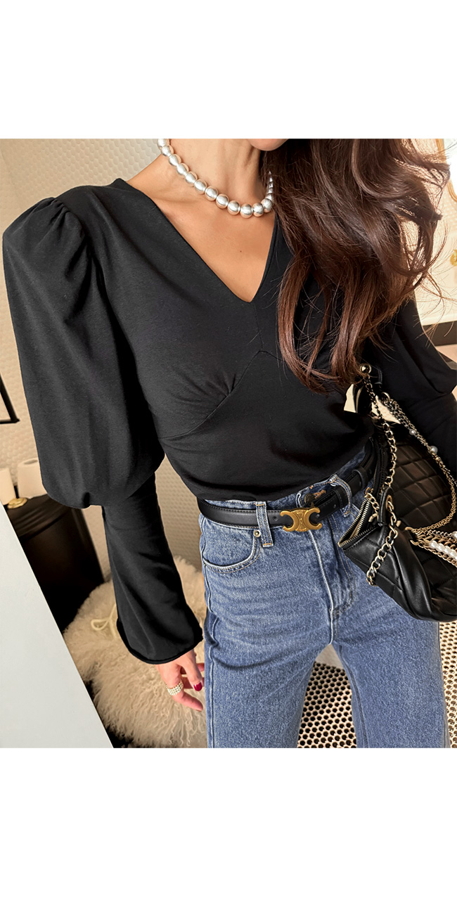 은은하게 퍼지는 퍼프 소매와 셔링 디테일이