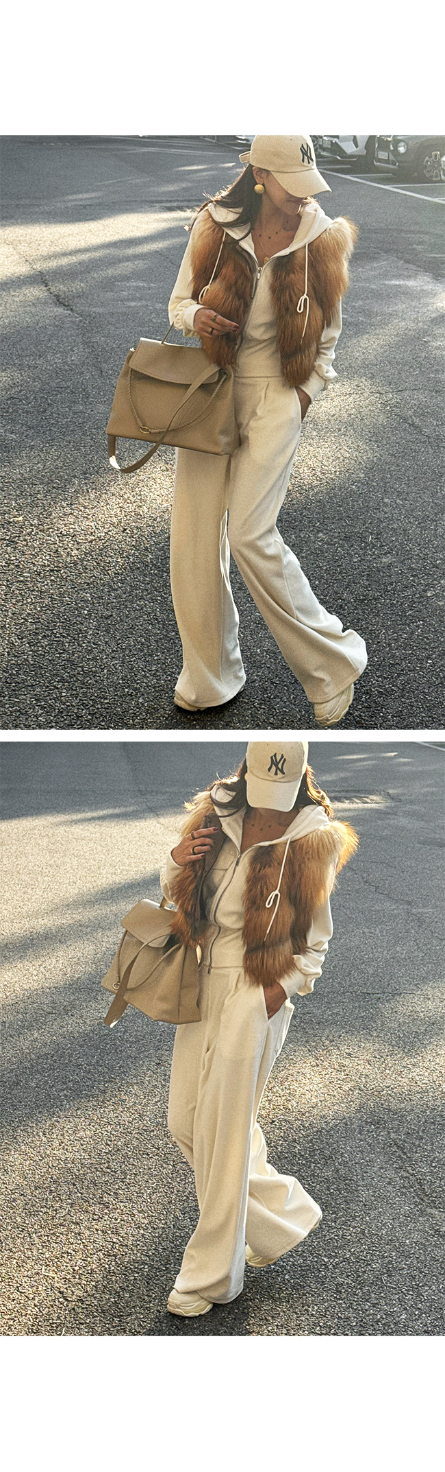 볼륨감 있는 퍼가 바디를 슬림하게 잡아주어