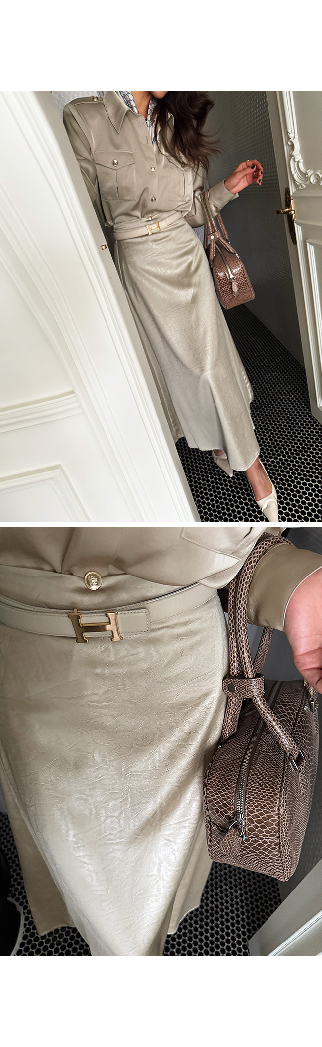 힙을 덮는 기장감으로 팬츠, 스커트 어디와도