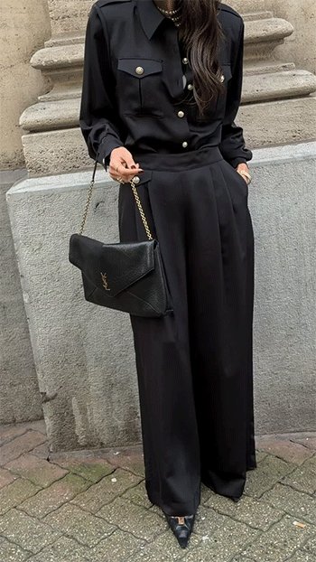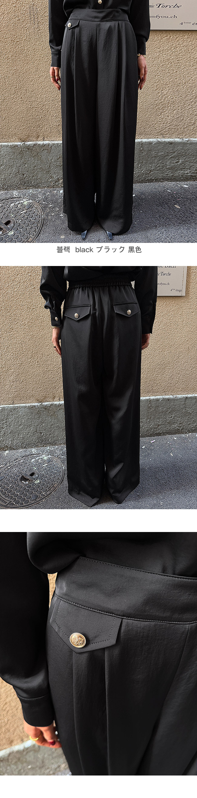 발등을 자연스럽게 덮는 롱한 와이드 실루엣이