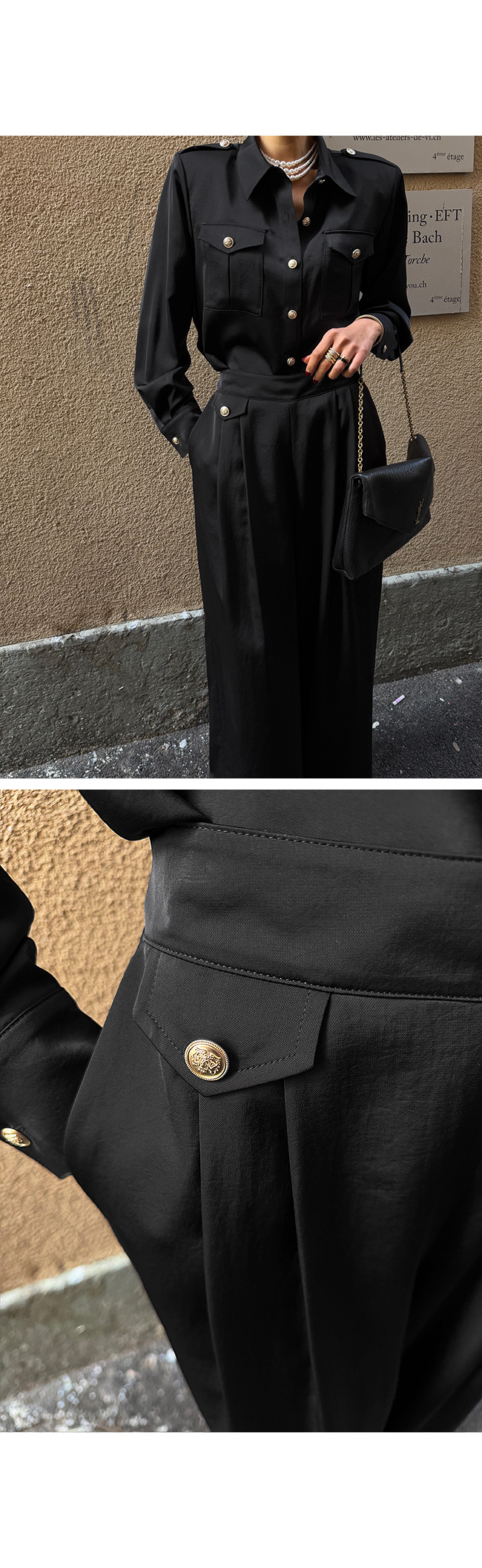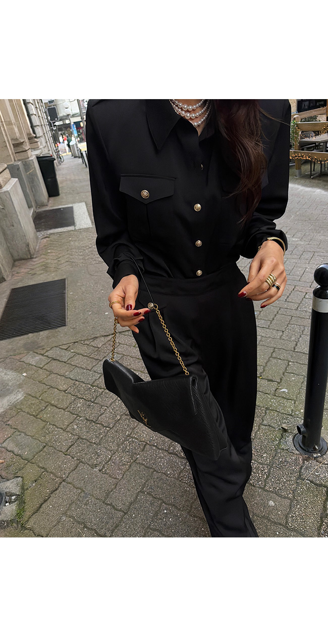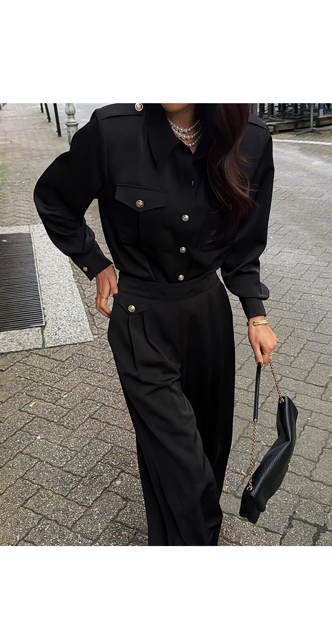 사이드에는 골드 버튼 장식 플랩 디테일이 더해져