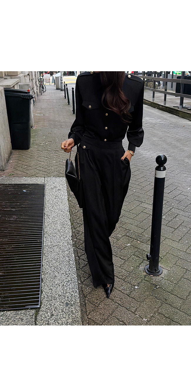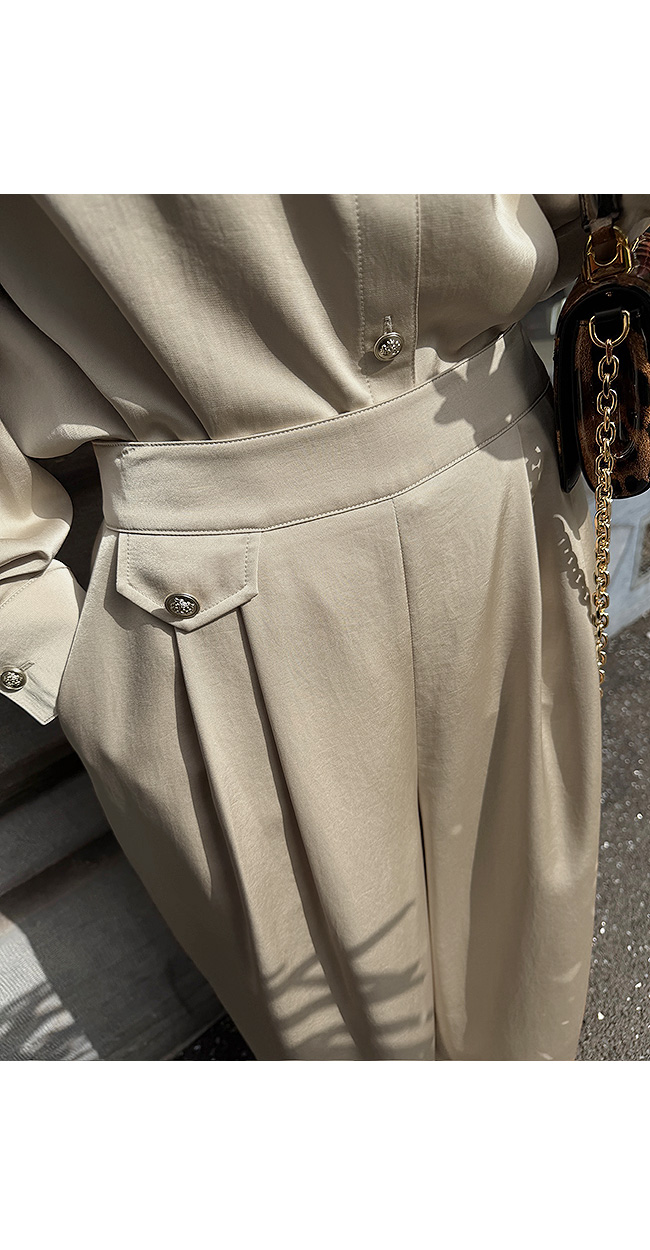허리 부분에는 와이드한 허릿단 디자인을 더해