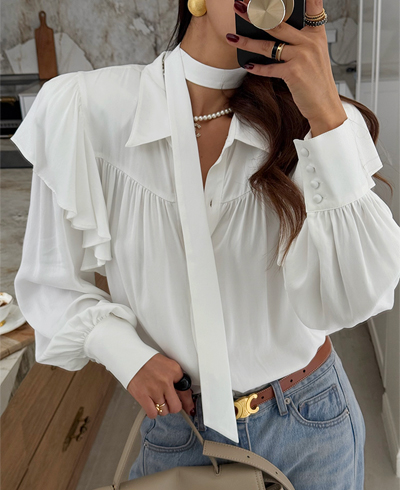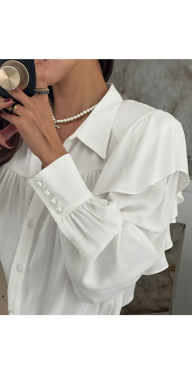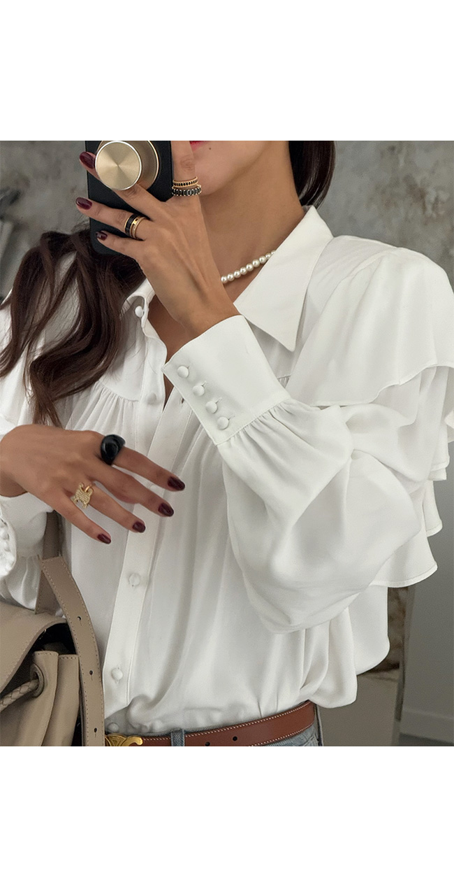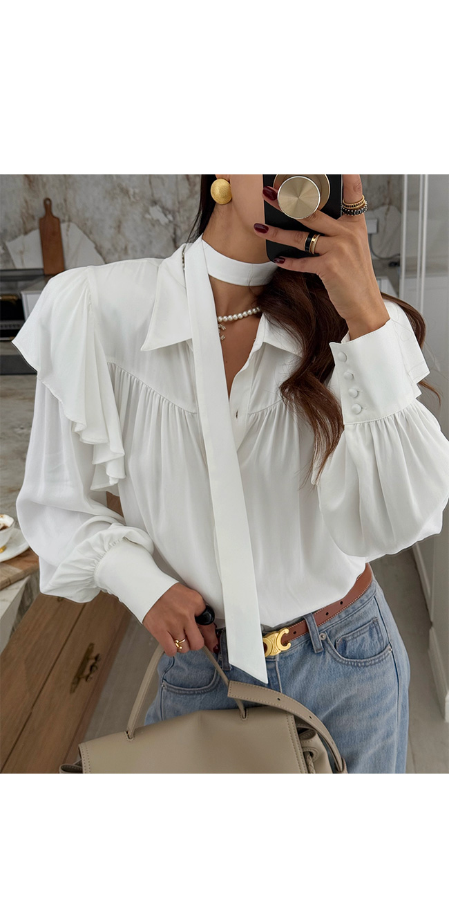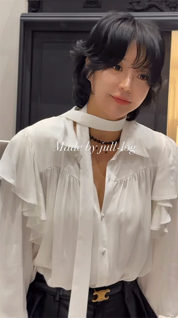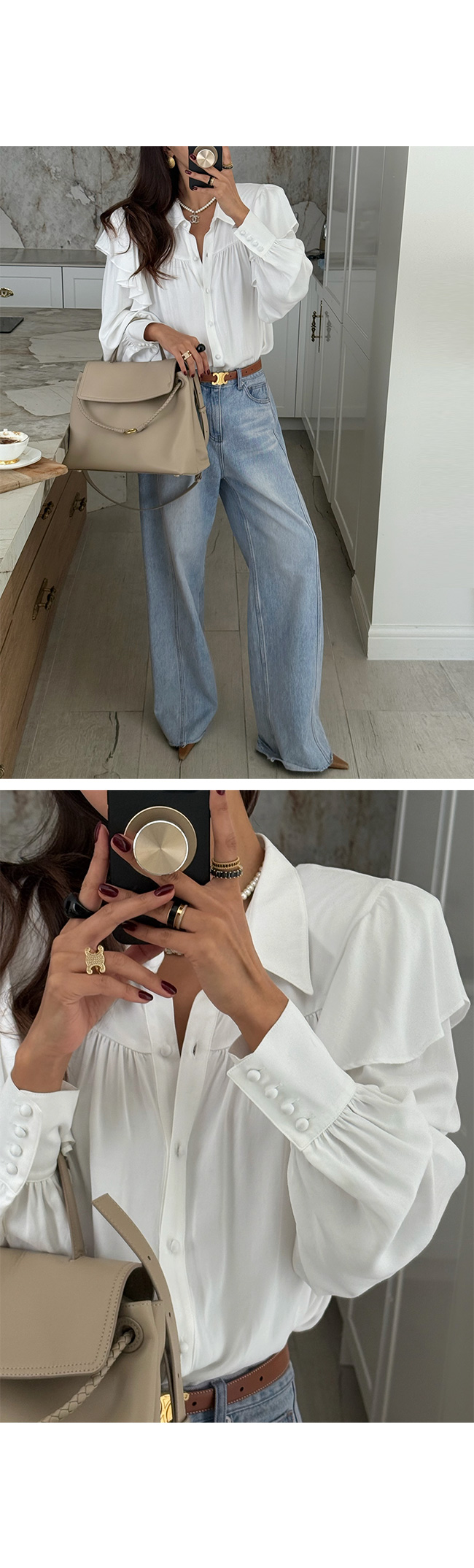 프릴 디테일이 단정한 카라 셔츠 실루엣에