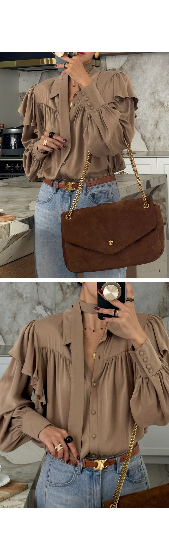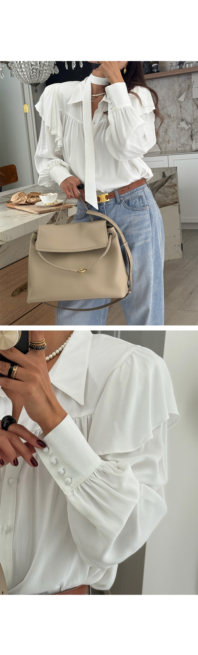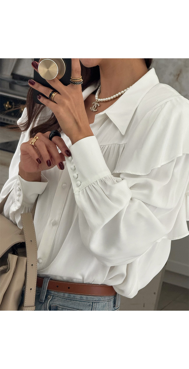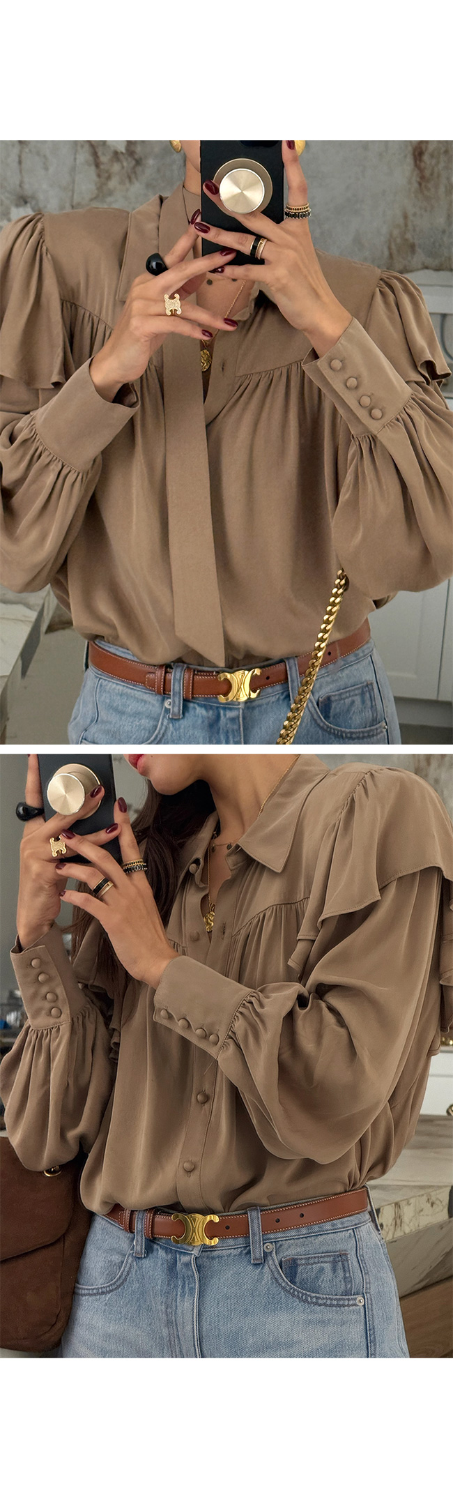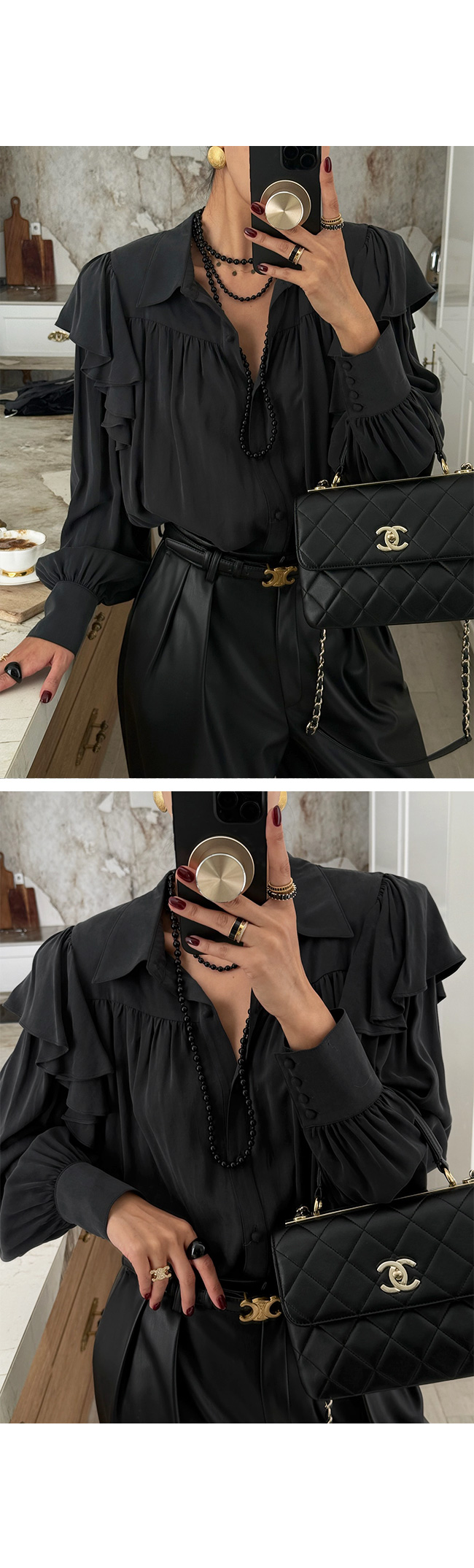프릴 디테일이 단정한 카라 셔츠 실루엣에