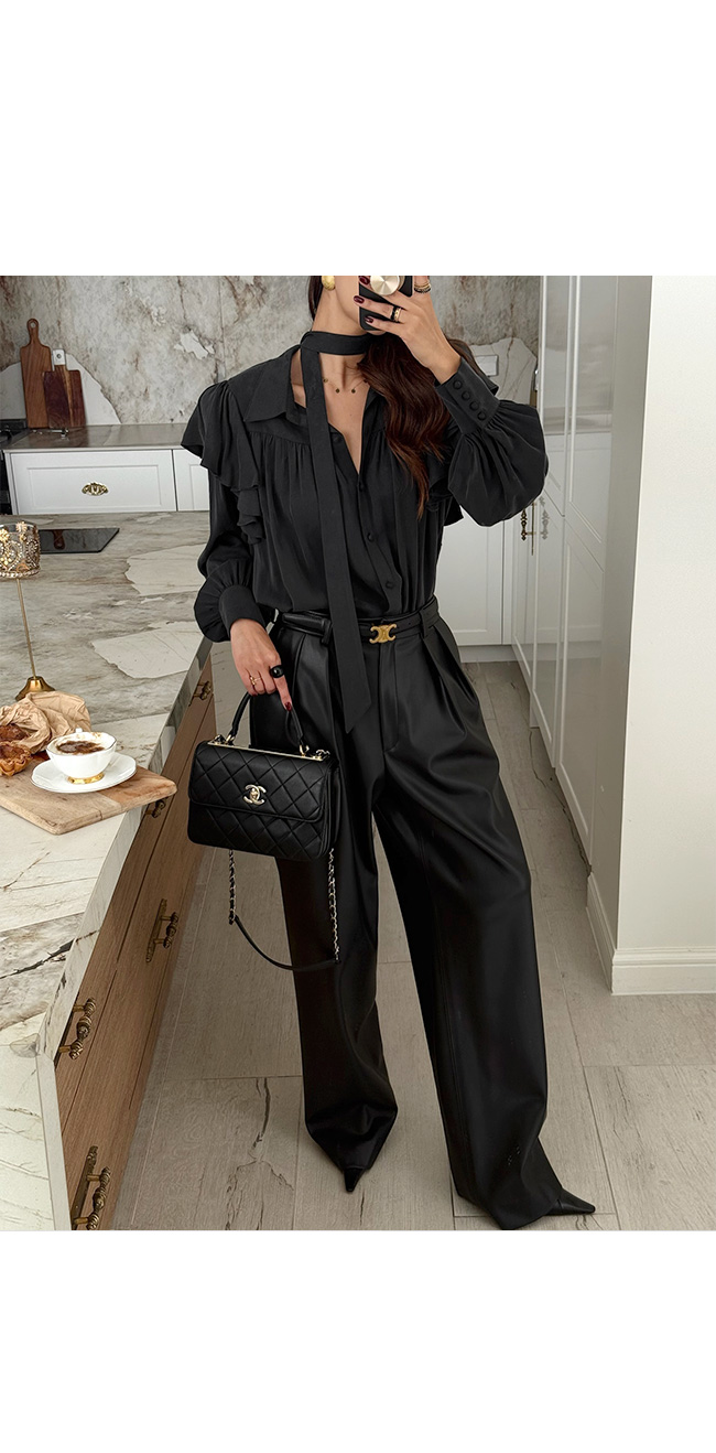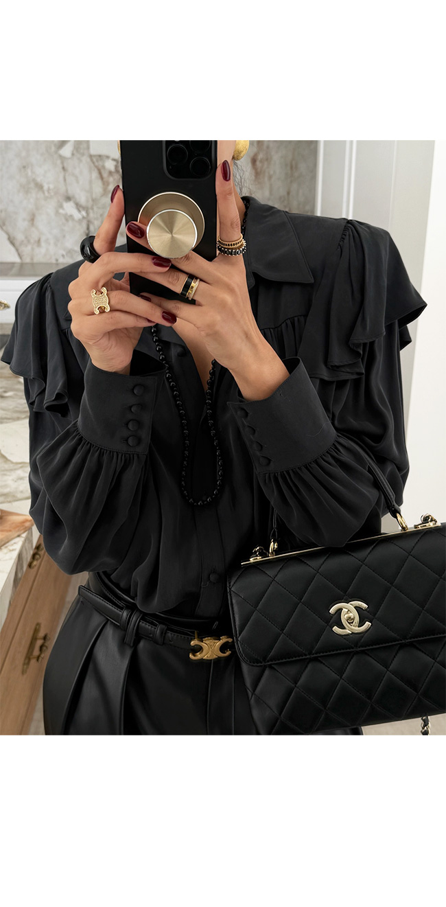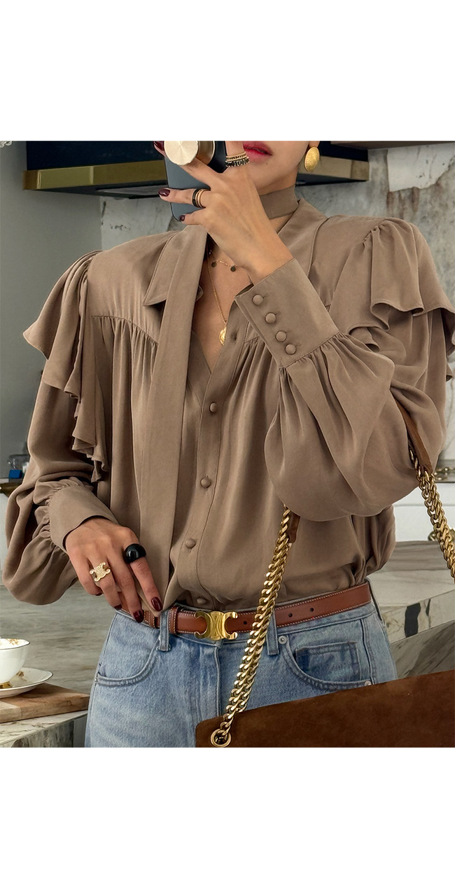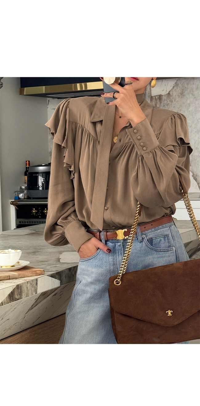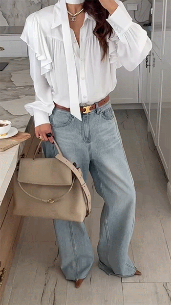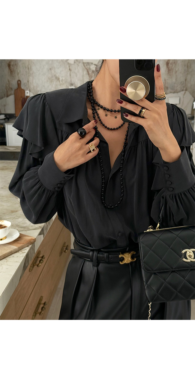 프릴 디테일이 단정한 카라 셔츠 실루엣에