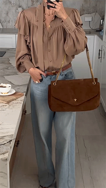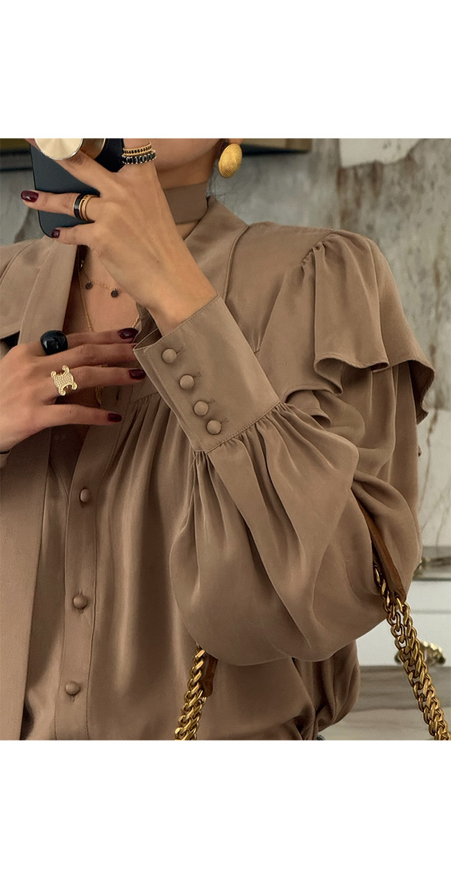 볼륨감 있는 퍼프 소매와 커프스 버튼 디테일로