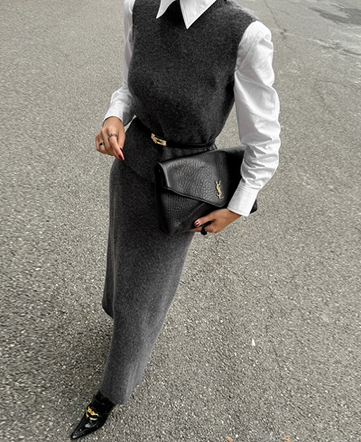 또는 셔츠와 매치해 모던한 오피스룩으로도 연출 가능해요.