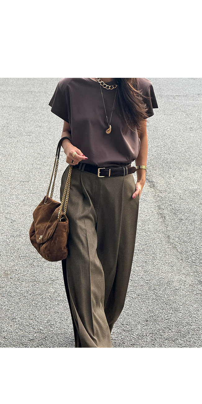 같은 톤의 팬츠와 매치하면 모던한 셋업룩으로 완성되어