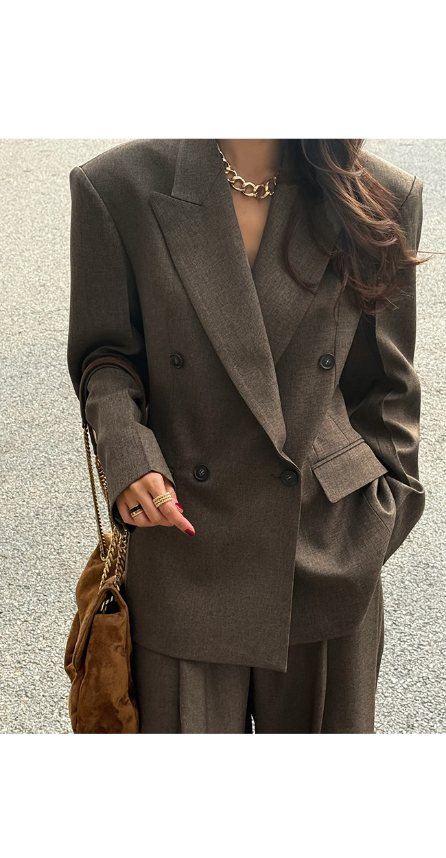 더블 버튼 디테일이 포멀한 분위기를 더해줘요.