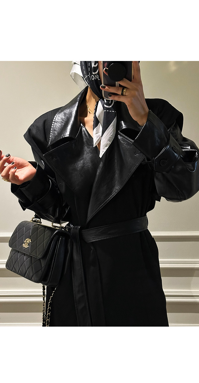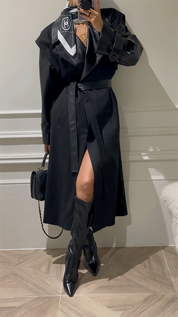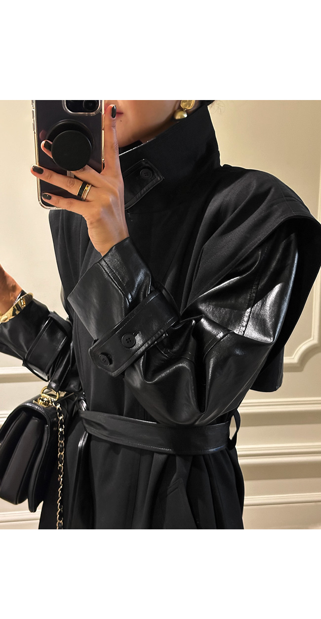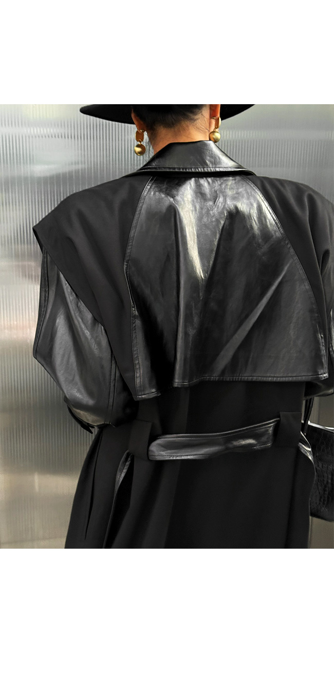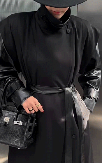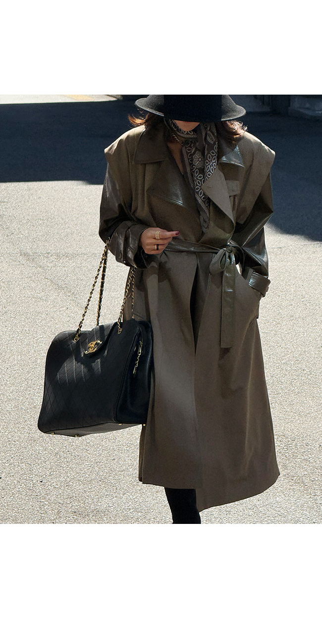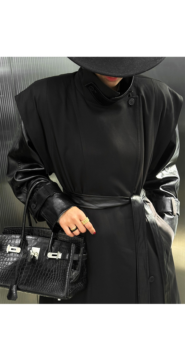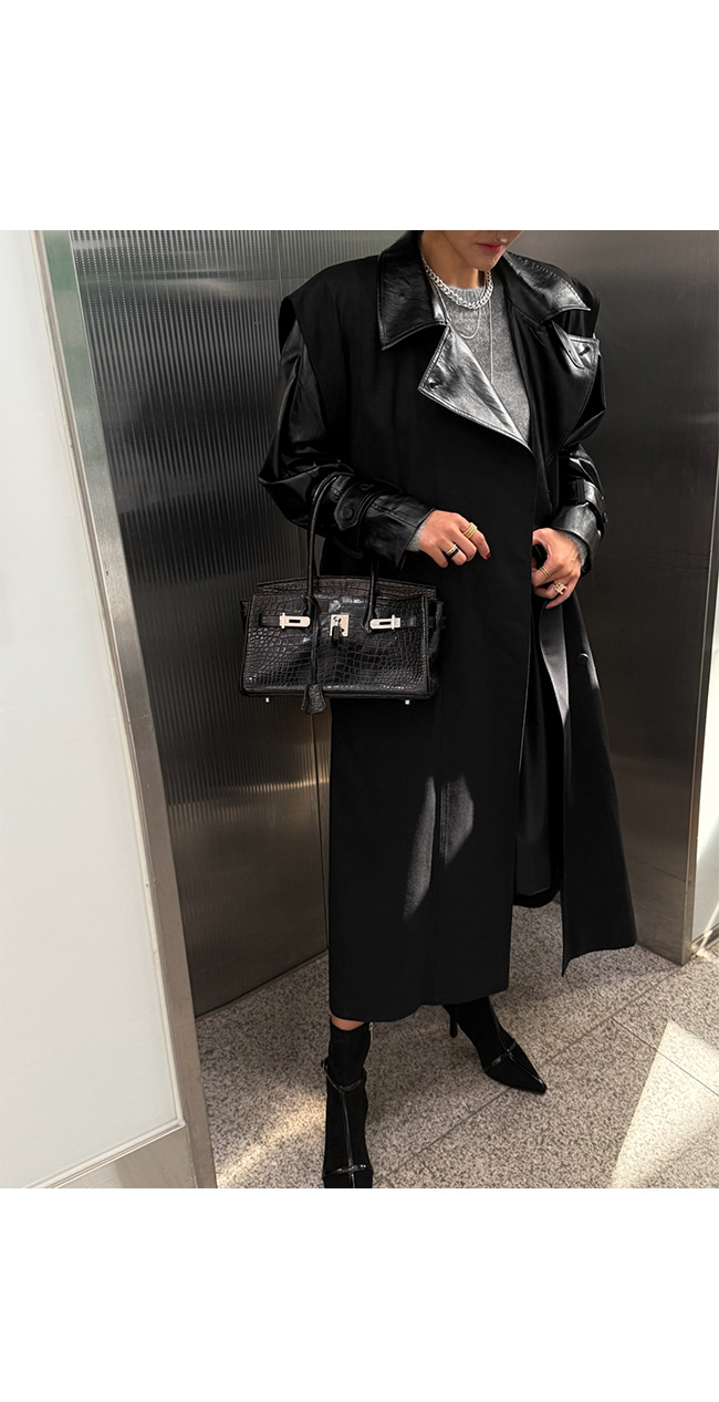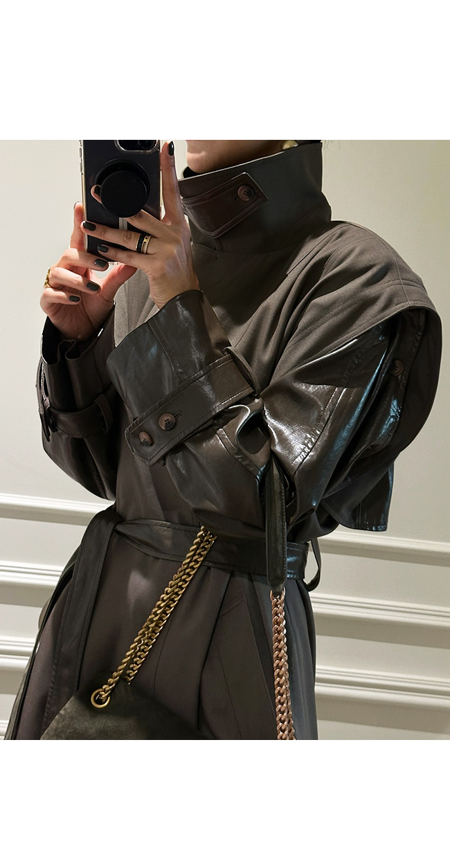 믹스된 디자인으로, 클래식한 트렌치의 실루엣에
