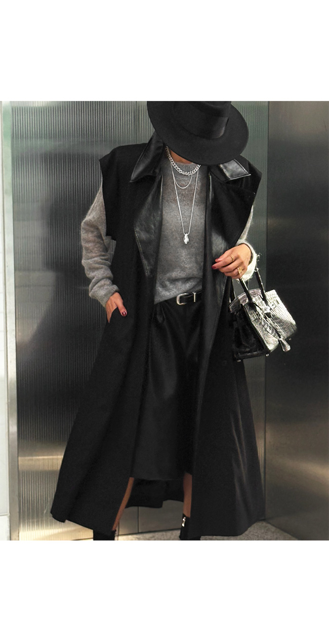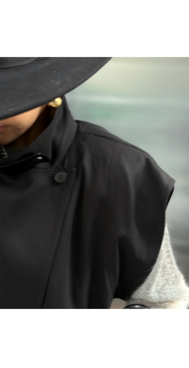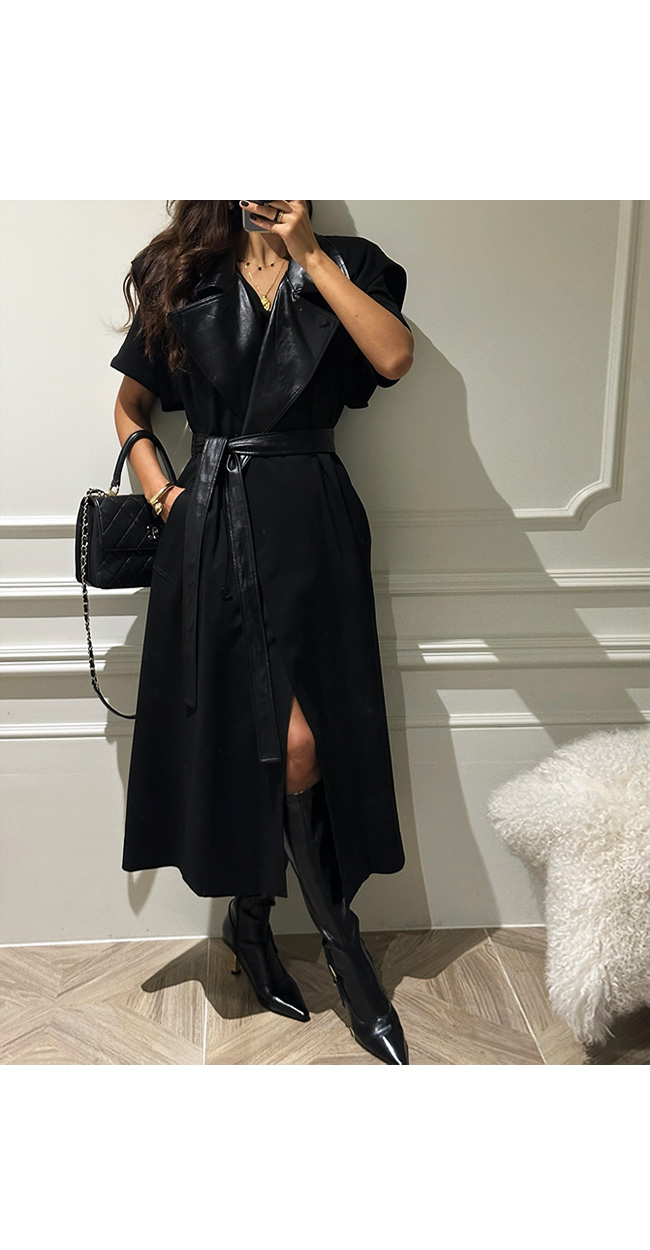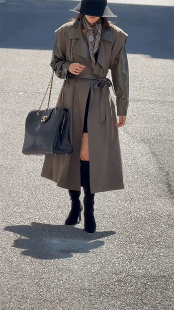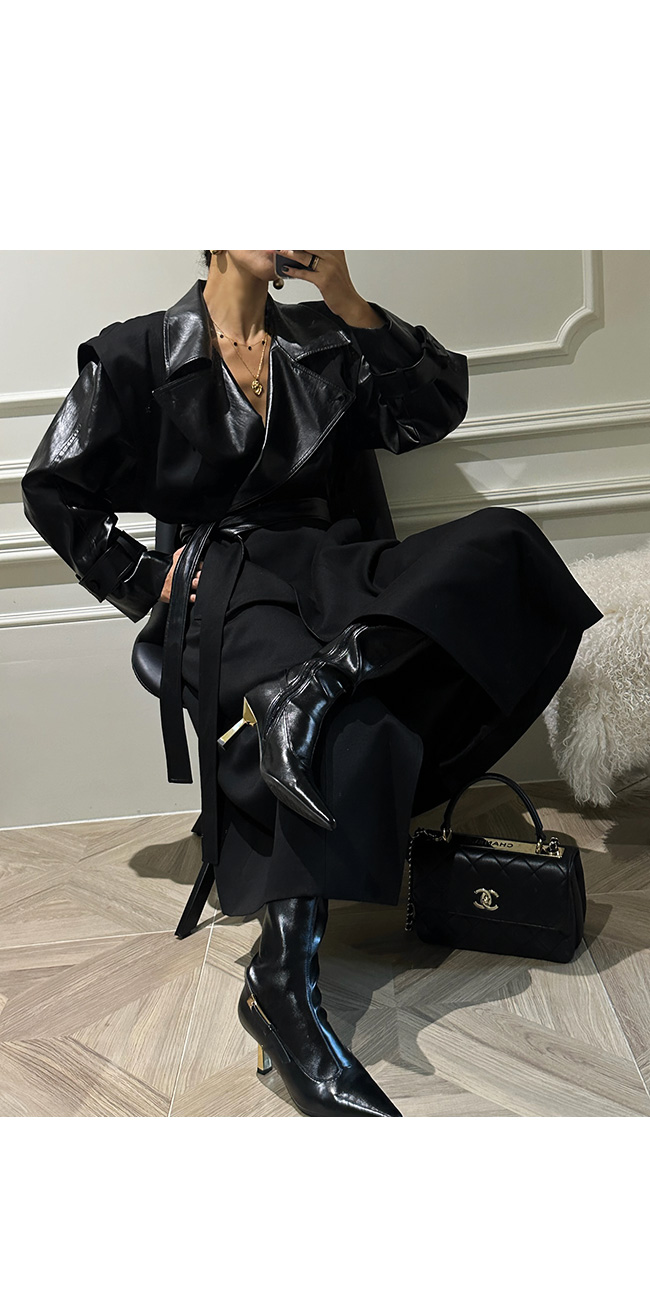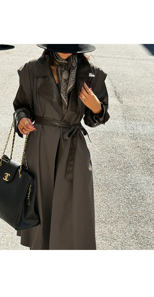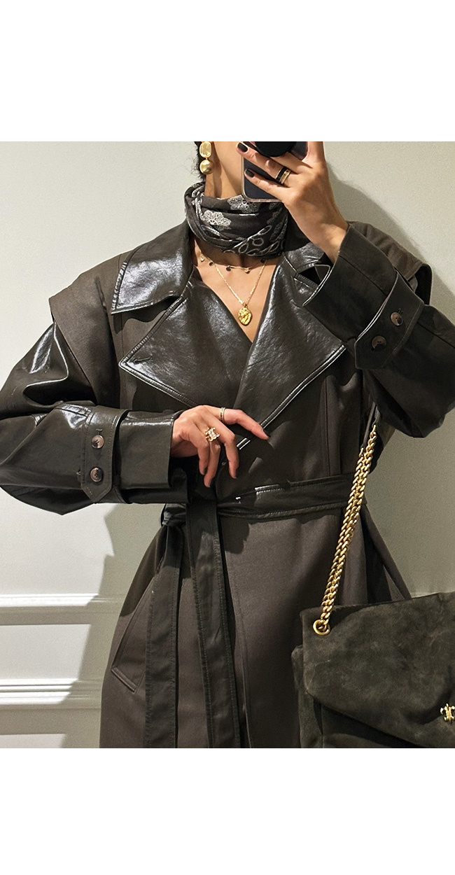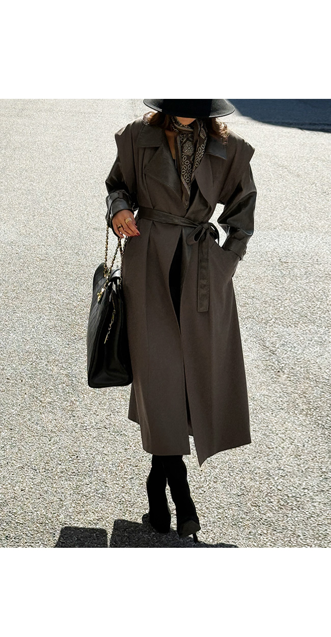 믹스된 디자인으로, 클래식한 트렌치의 실루엣에