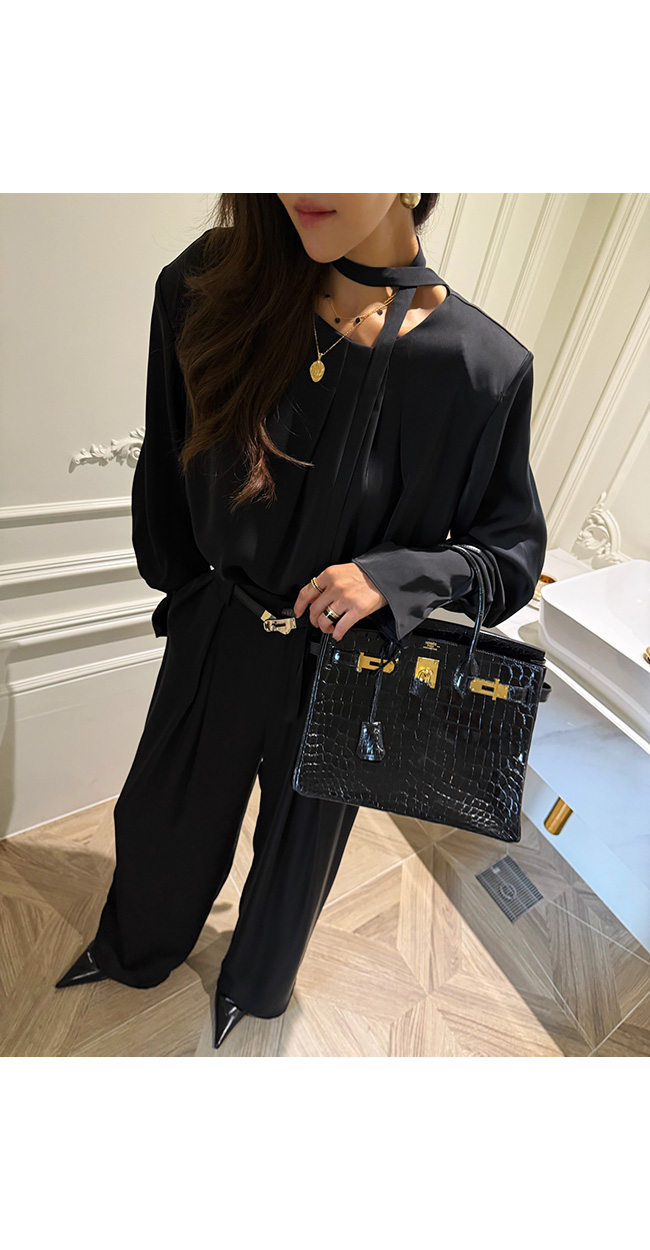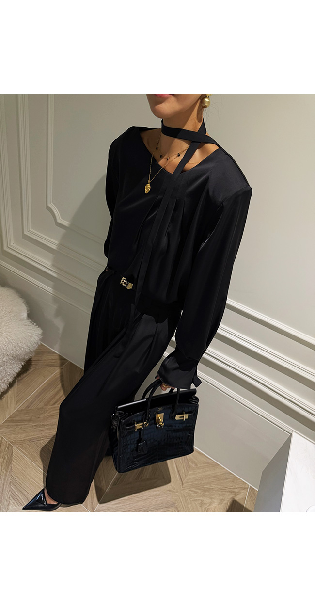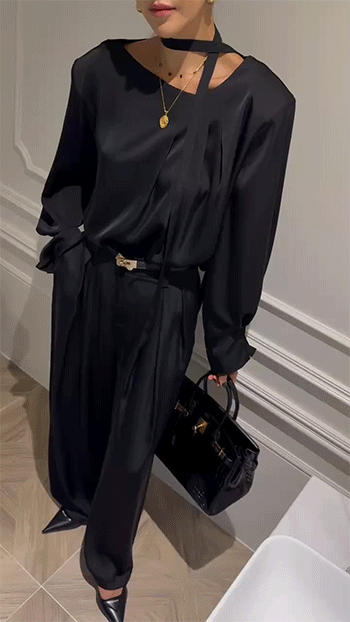 끈 블라우스 & 팬츠 세트를 소개해드릴게요.