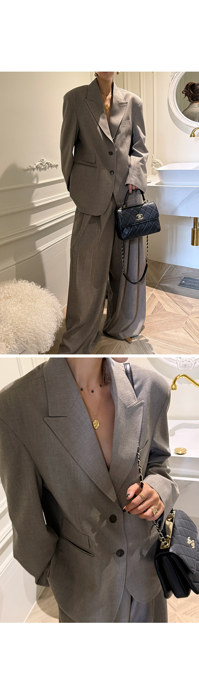 슬랙스나 와이드 팬츠와 매치하면 포멀하면서도 감각적인 오피스룩으로,