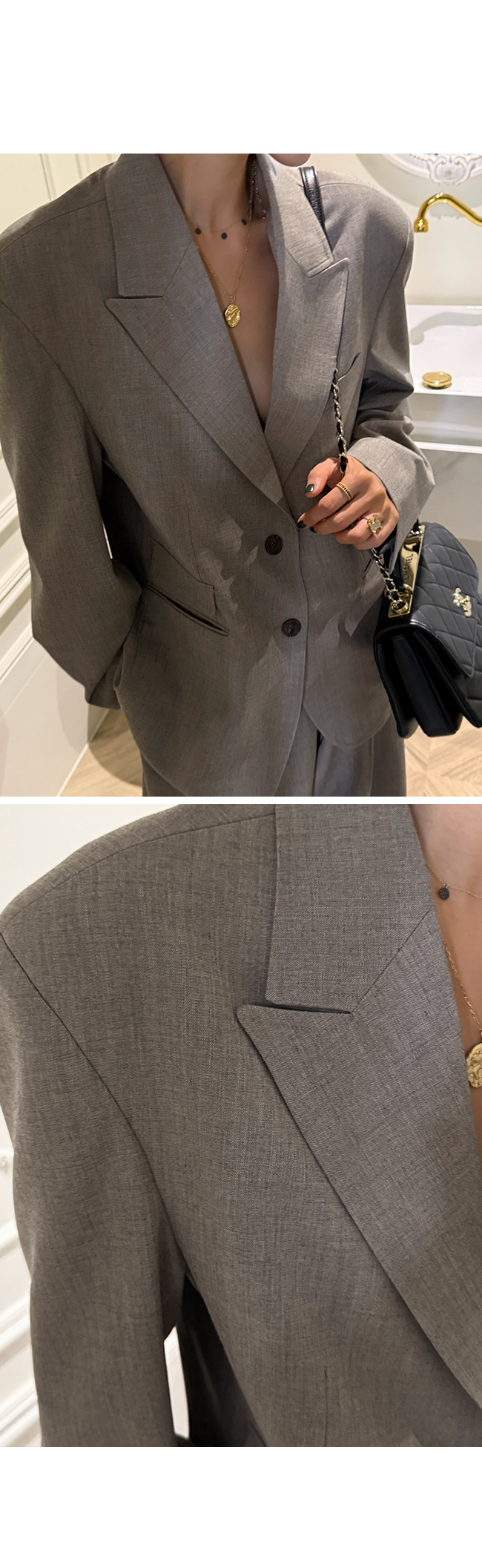 클래식한 자켓의 감성을 살리면서도, 여유로운 오버핏 패턴으로