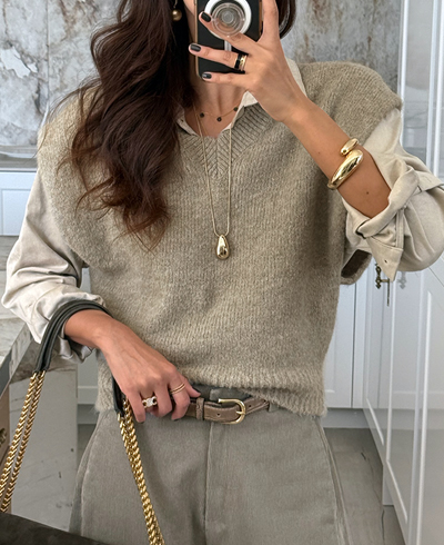 깔끔한 V넥 라인이 얼굴선을 슬림하게 잡아주고,