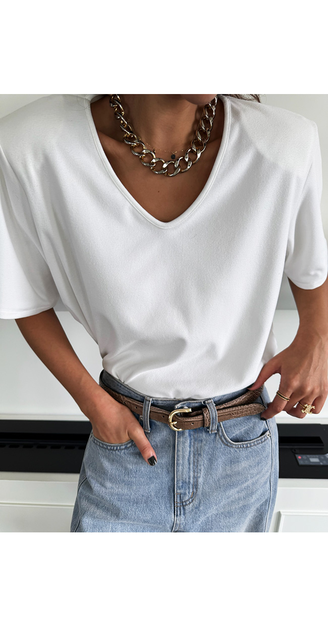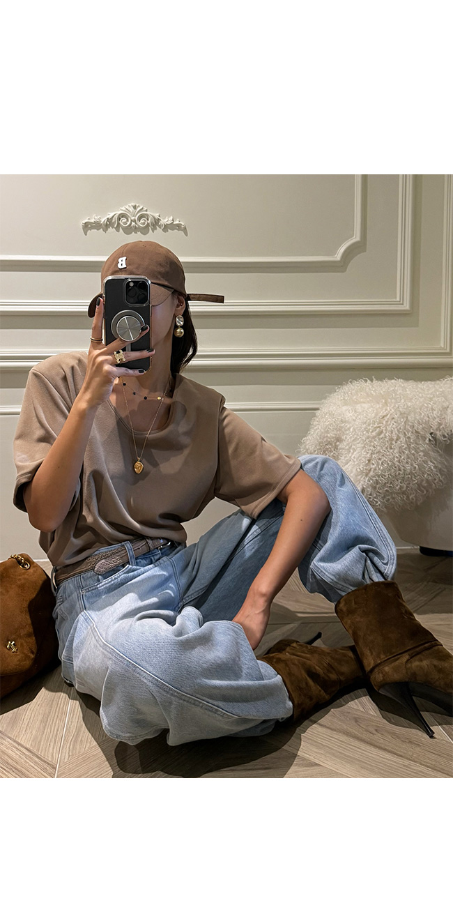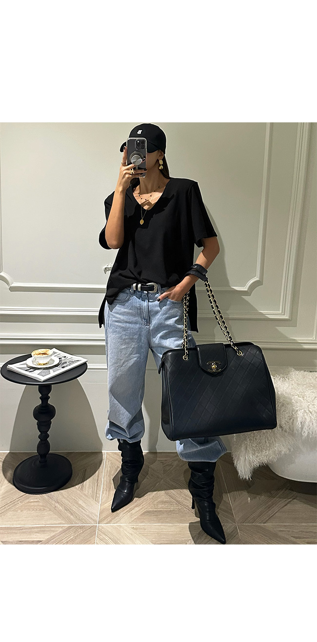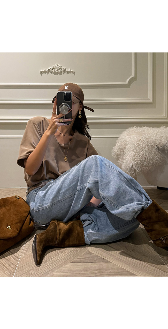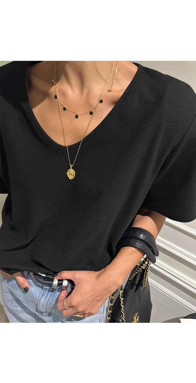 쇄골 라인을 은은하게 드러내 얼굴을 갸름하고