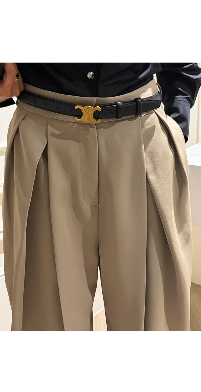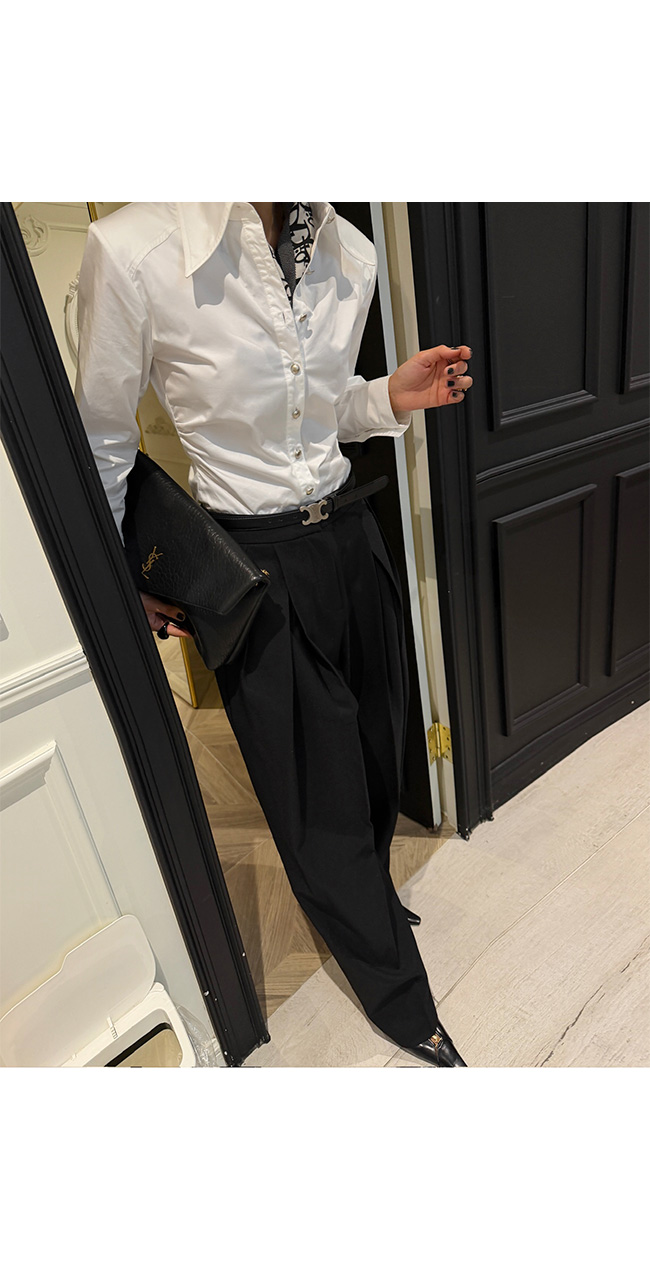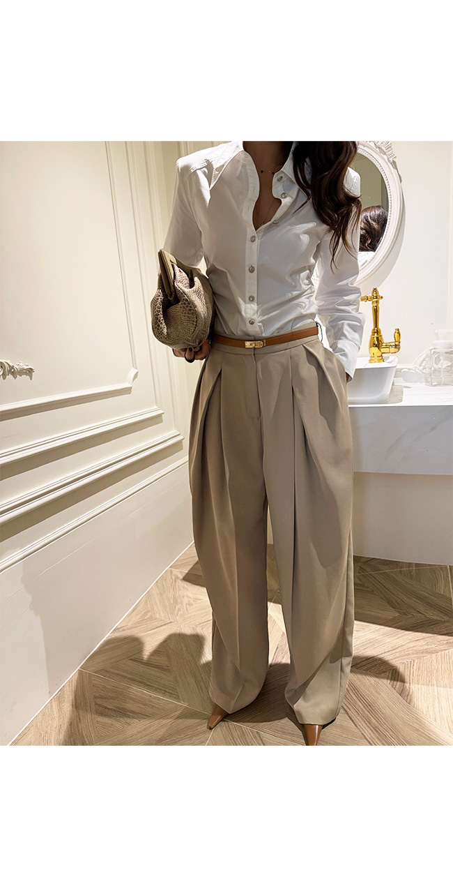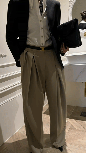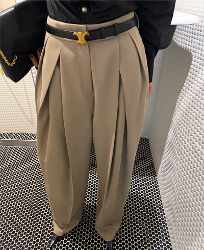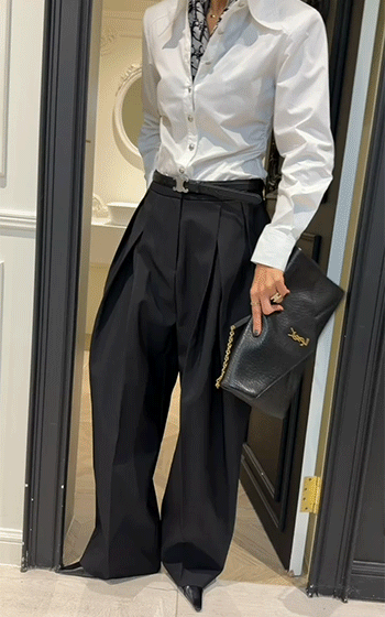 프론트 라인에 깊게 잡힌 투 핀턱 디테일이