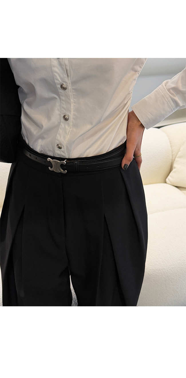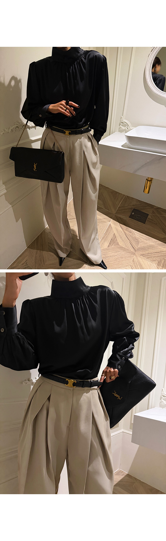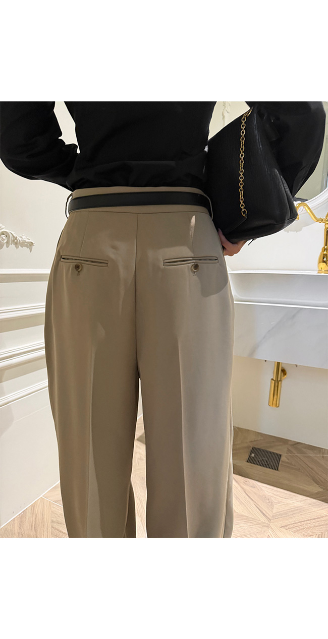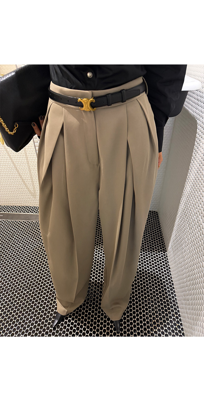 프론트 라인에 깊게 잡힌 투 핀턱 디테일이