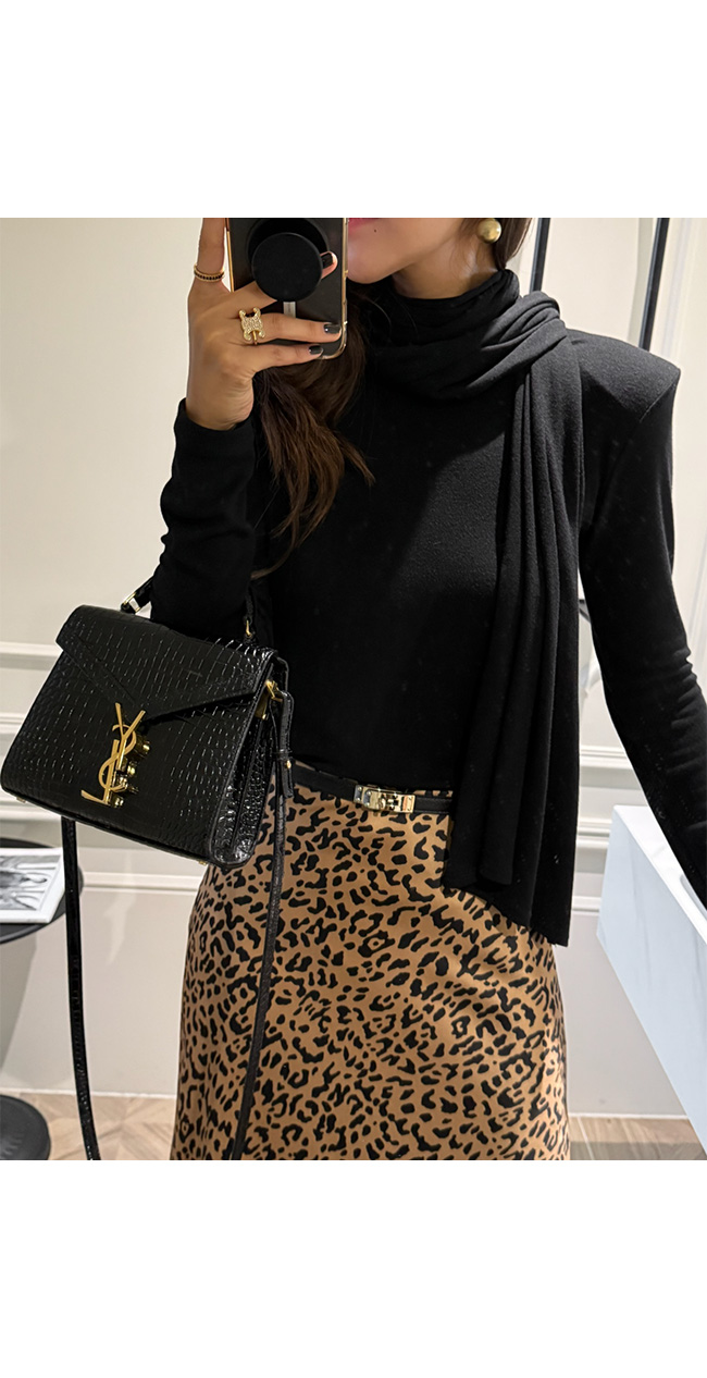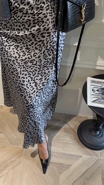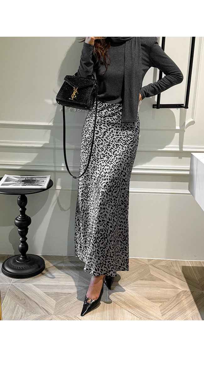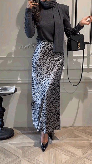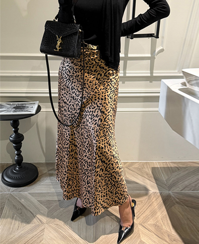 세련된 실루엣이 돋보이는 레오파드 스커트예요.