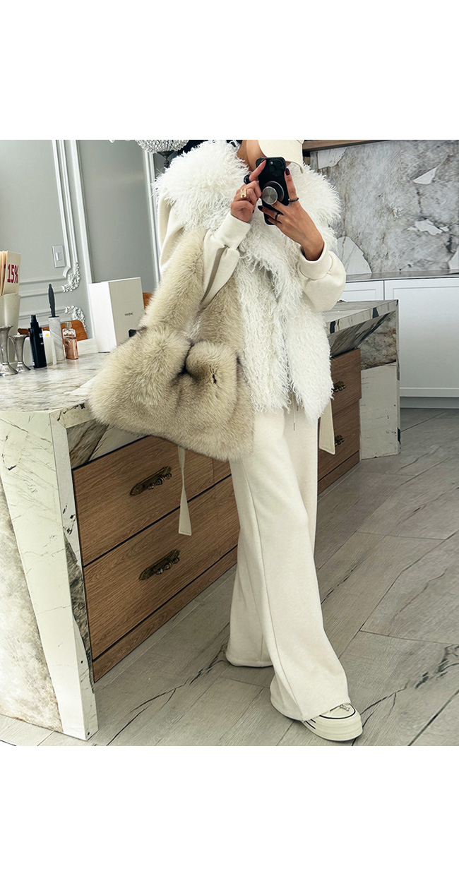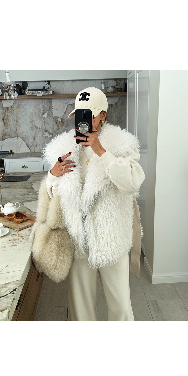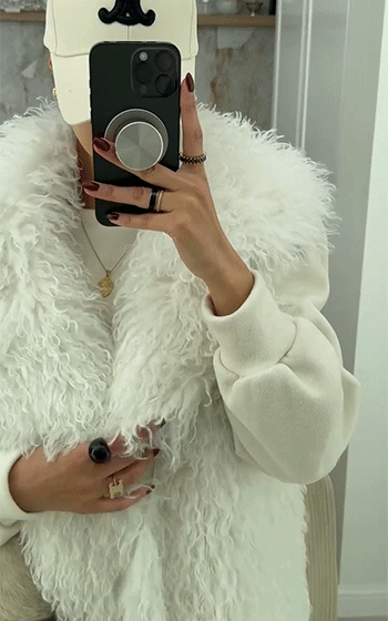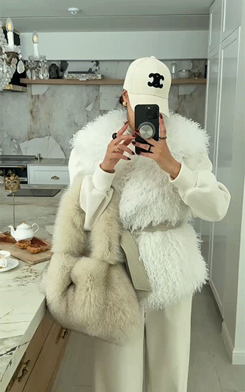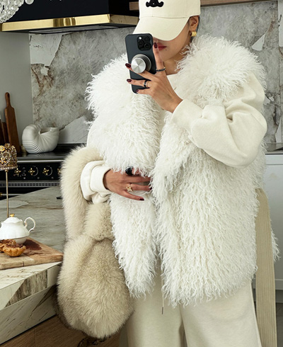 풍성하게 살아 있는 컬리한 텍스처의 퍼 소재로