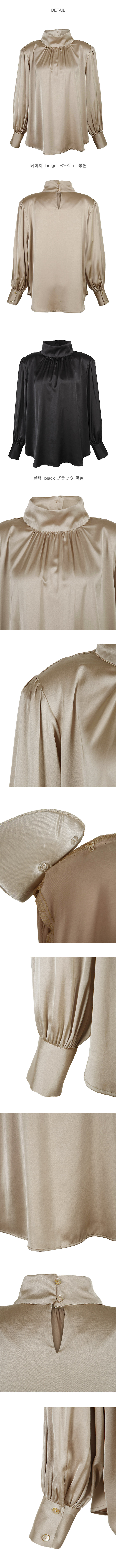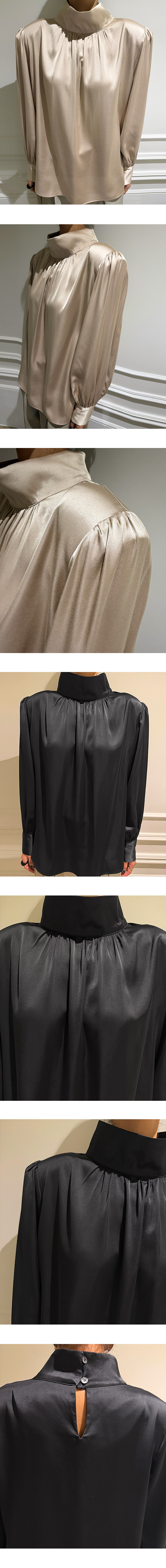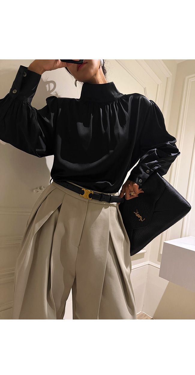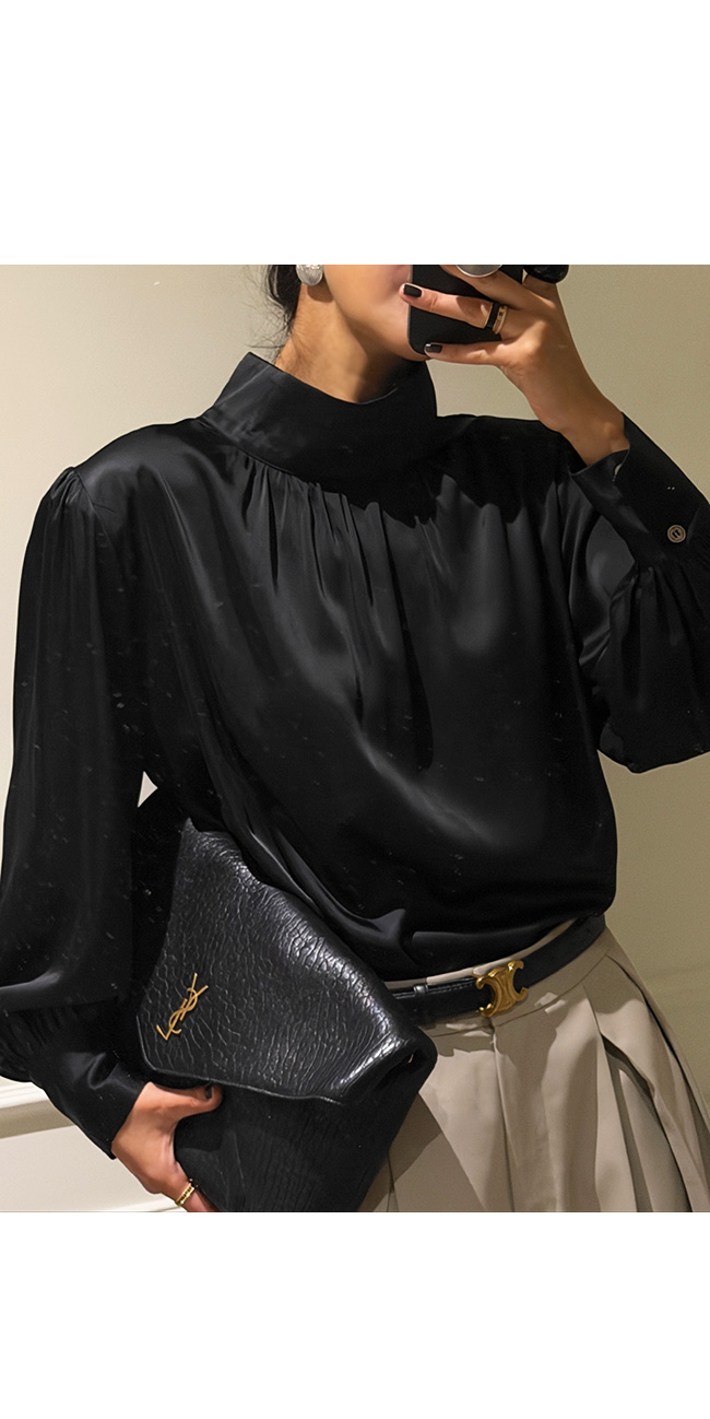 고급스럽고 세련된 무드의 새틴 하이넥 블라우스를 소개해드릴게요.