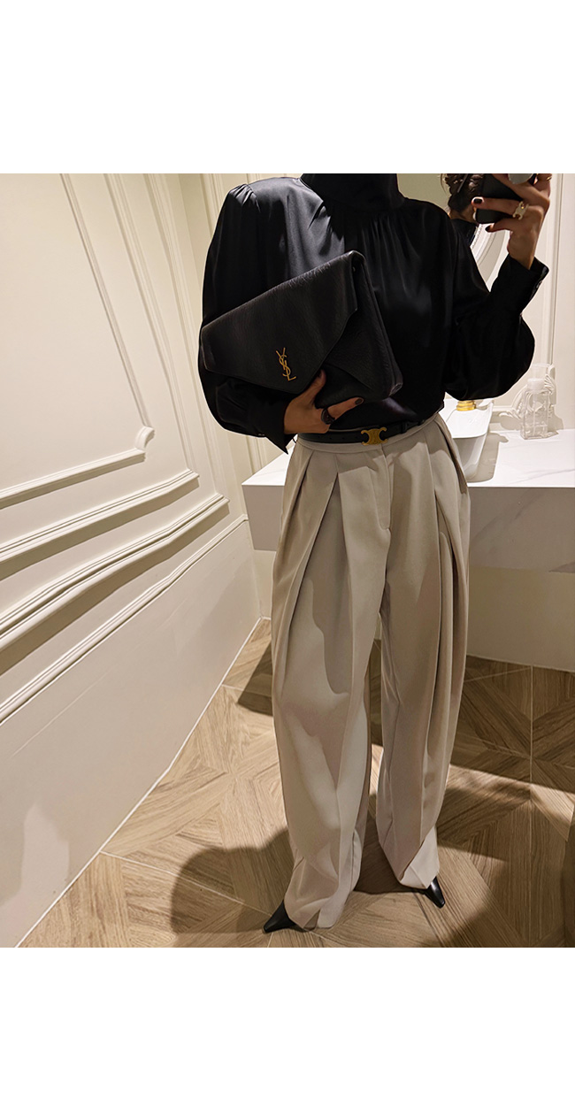 또한 와이드한 커프스 디테일이 더해져 한층 정돈된 무드를 더해주어요.