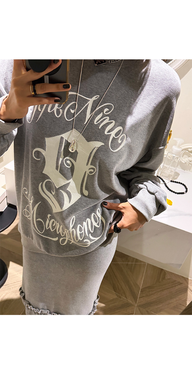 같은 원단의 벨로아 맨투맨과 셋업으로 착용하면