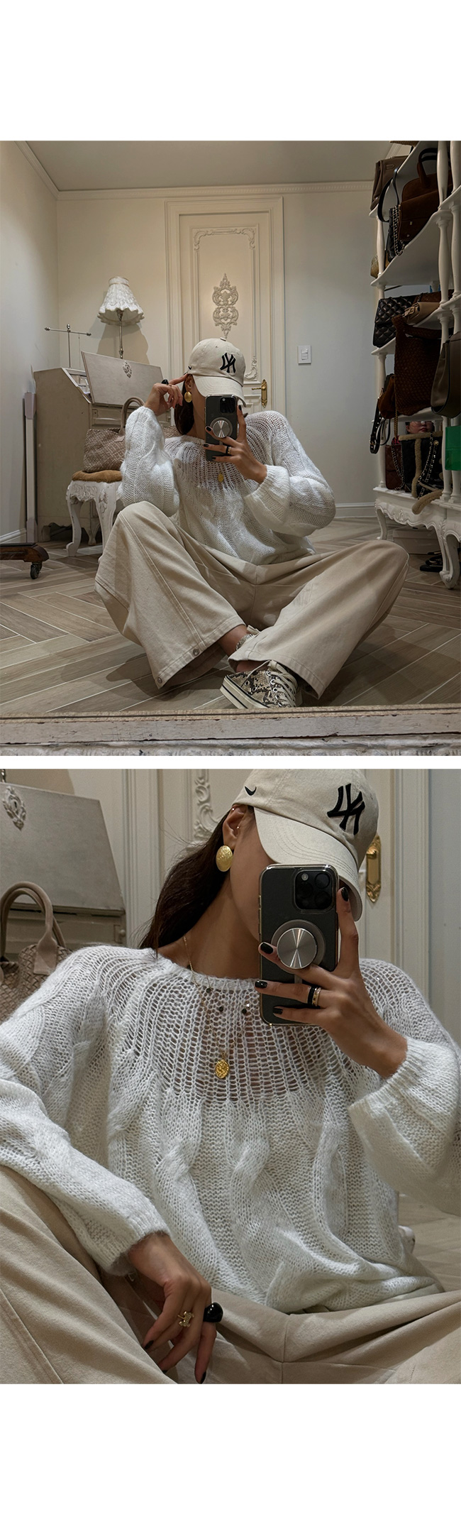 아우터 안에 이너로 매치해도 존재감이 살아나는