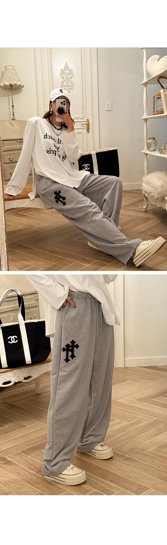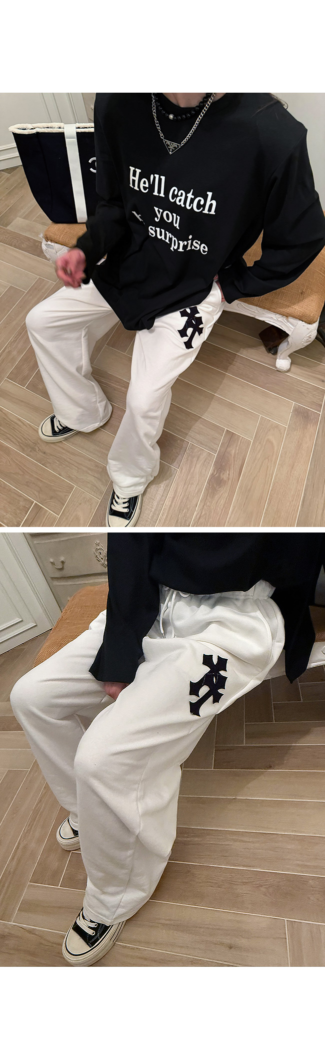 한쪽 허벅지에는 블랙 크로스 자수가 더해져