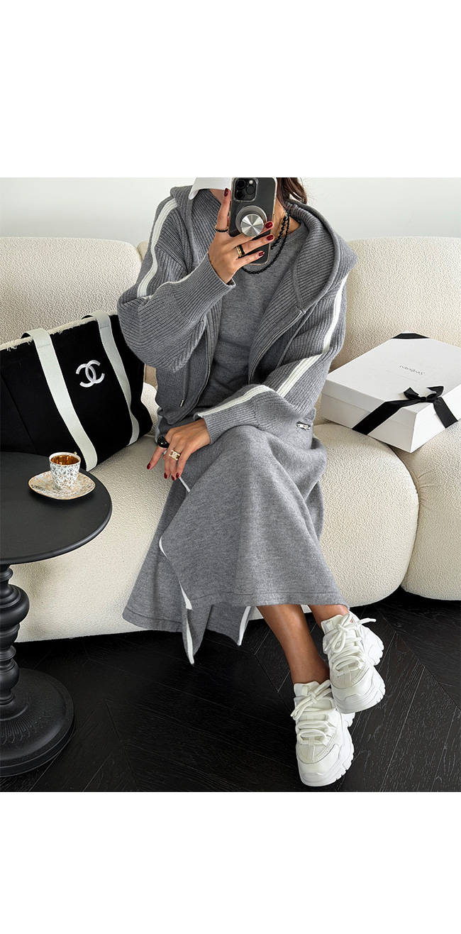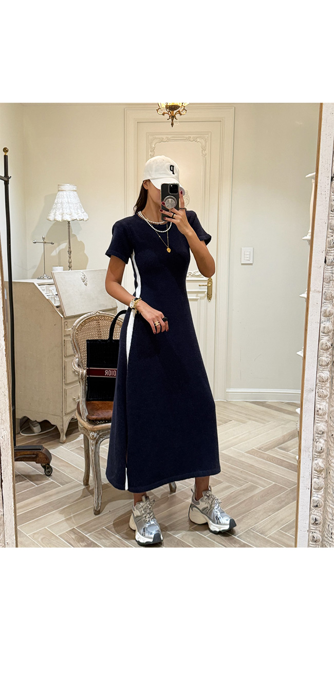 반팔 니트 롱 원피스를 소개해드릴게요.