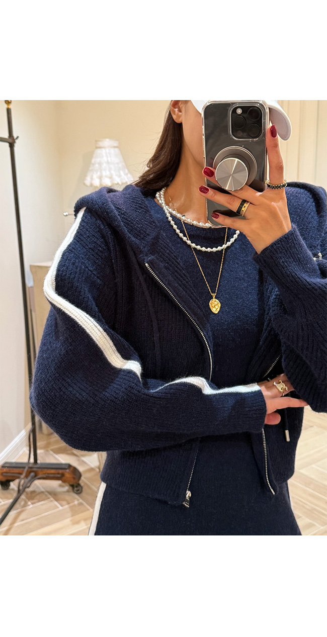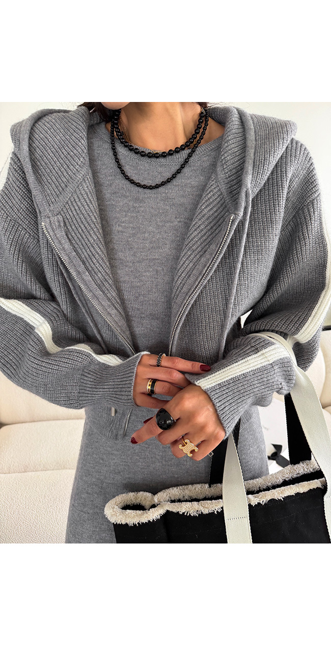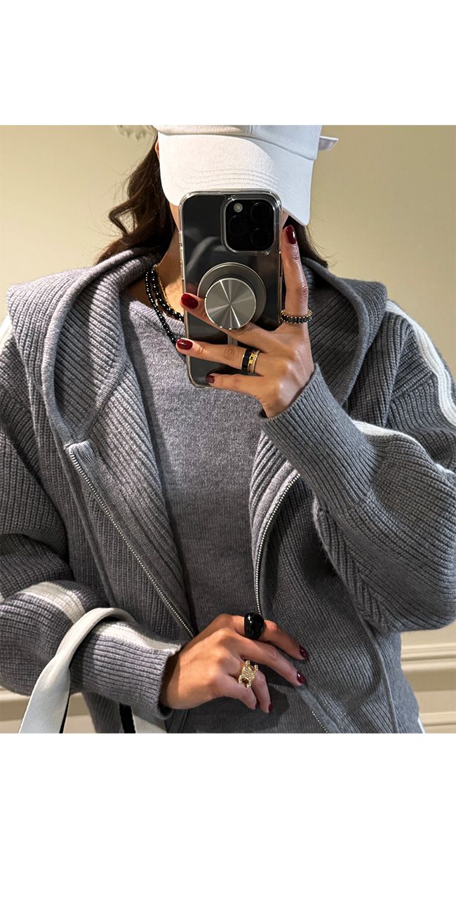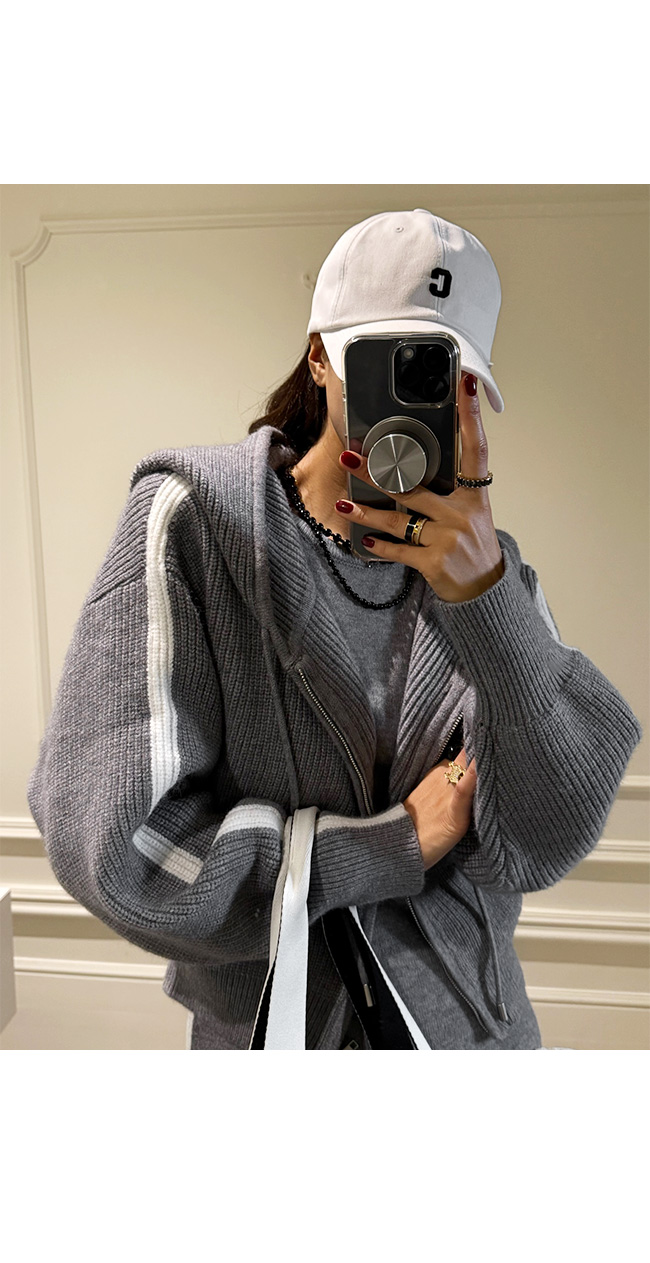 활용도 높은 니트 후드 집업 으로 추천드려요.