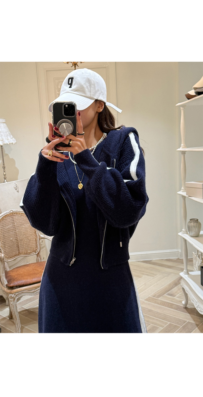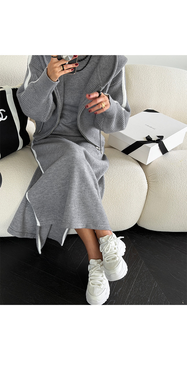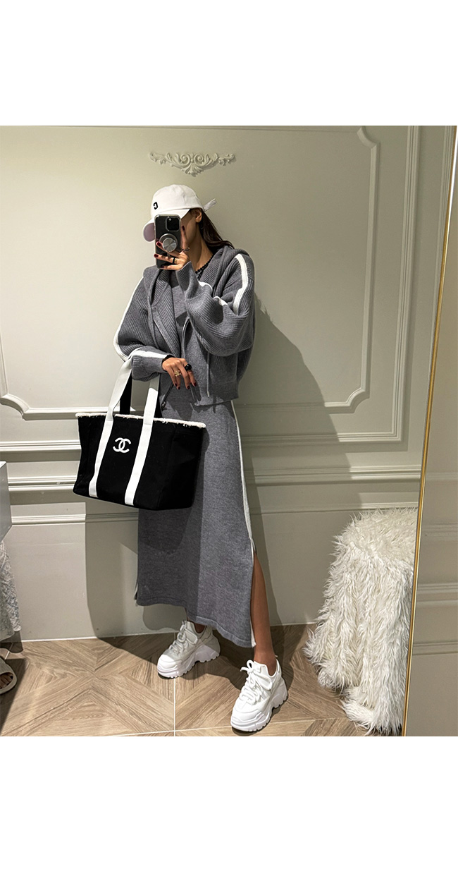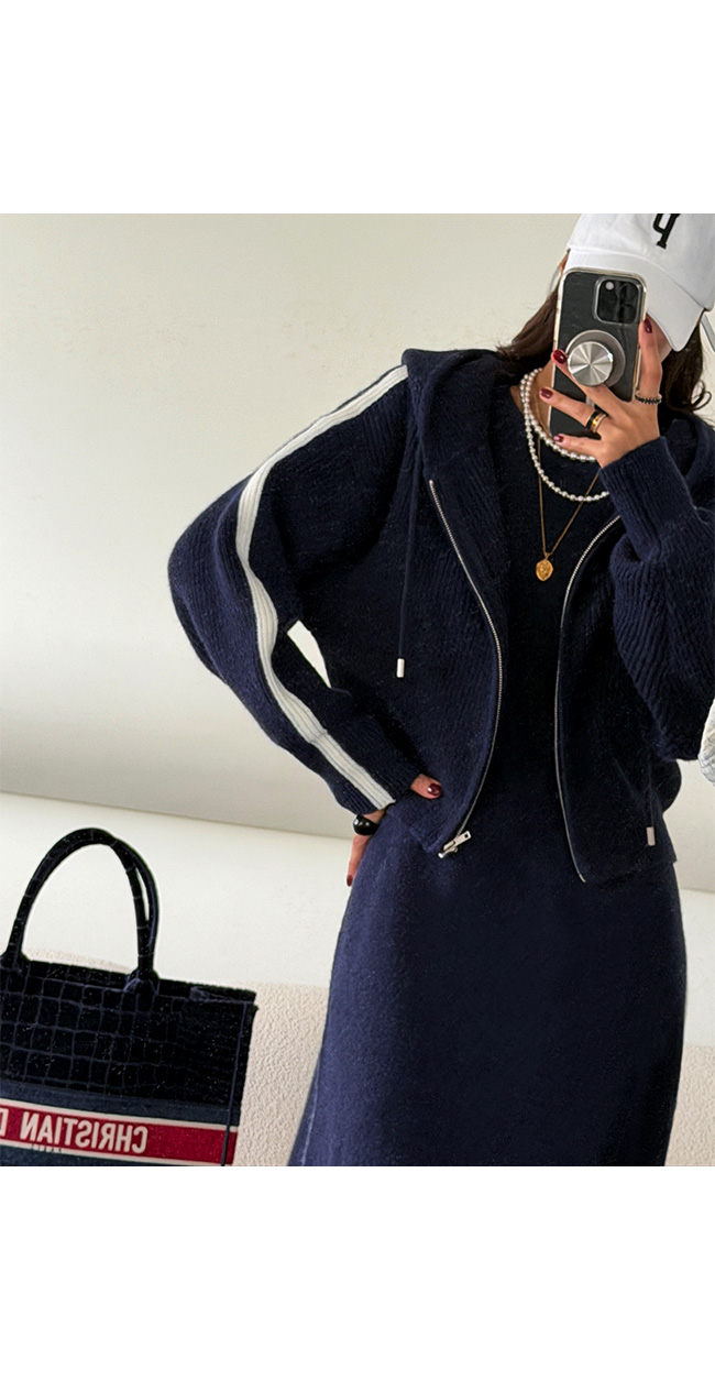 활용도 높은 니트 후드 집업 으로 추천드려요.