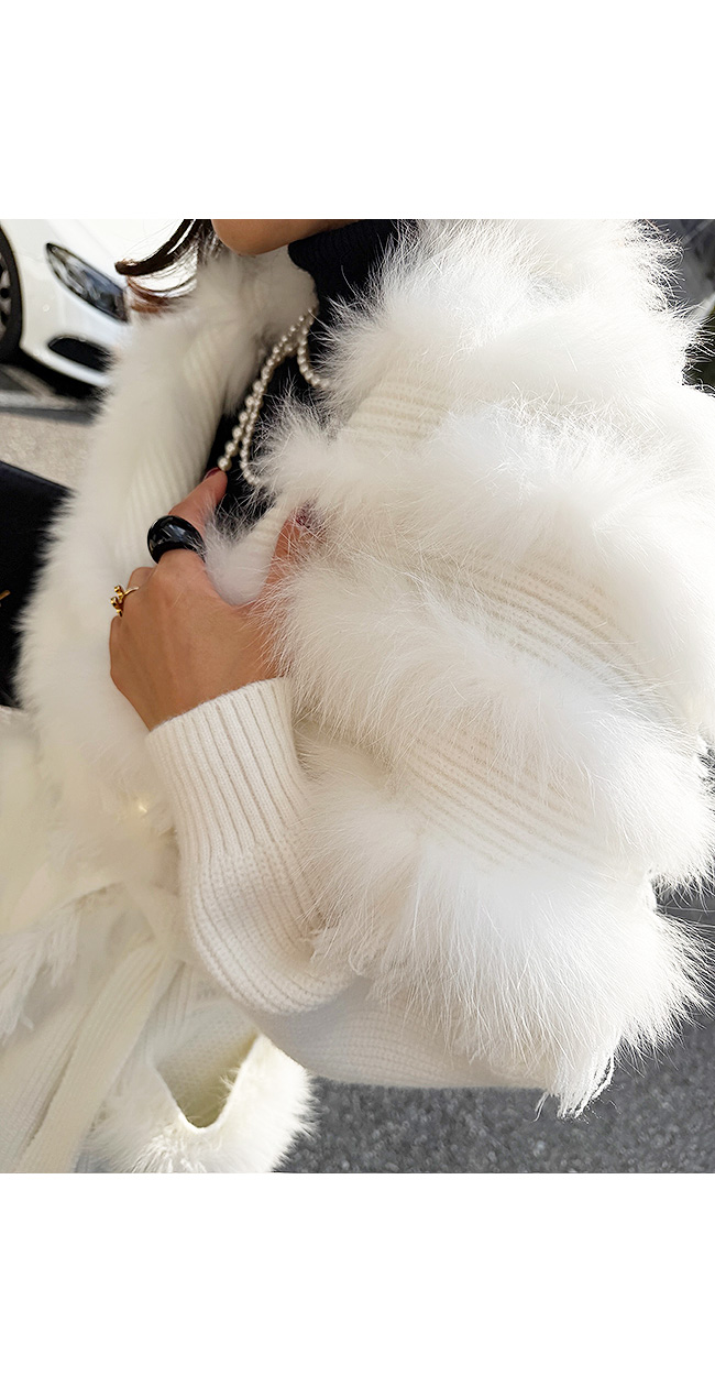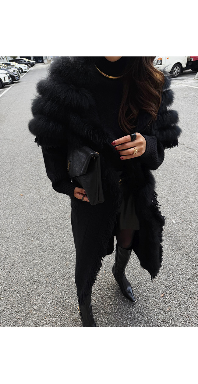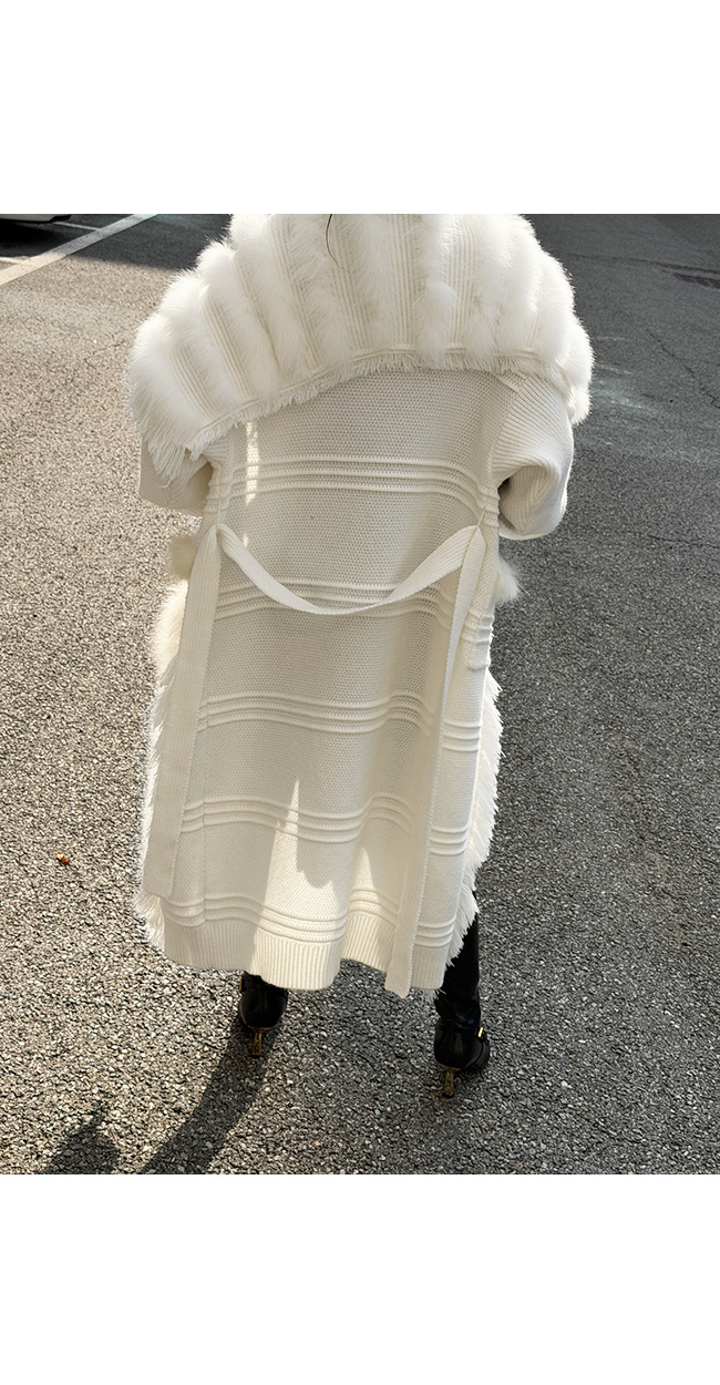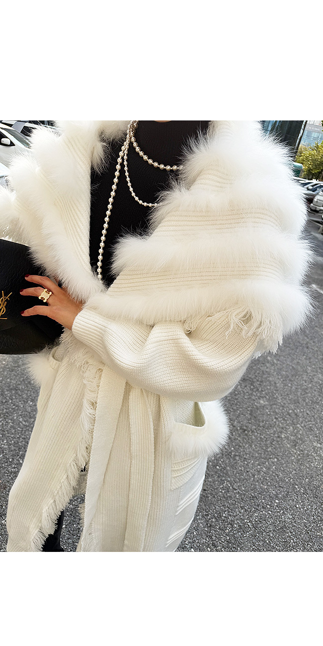 리얼 폭스 퍼 배색 니트 가디건을 소개해드릴게요.